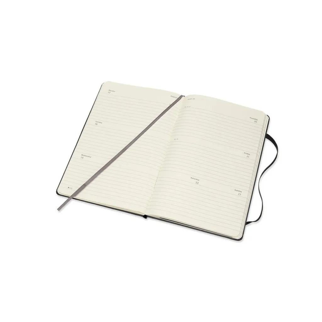 MOLESKINE diary (large) hard cover, weekly, horizontal (144 pg.), ribbon marker and elastic band for closing