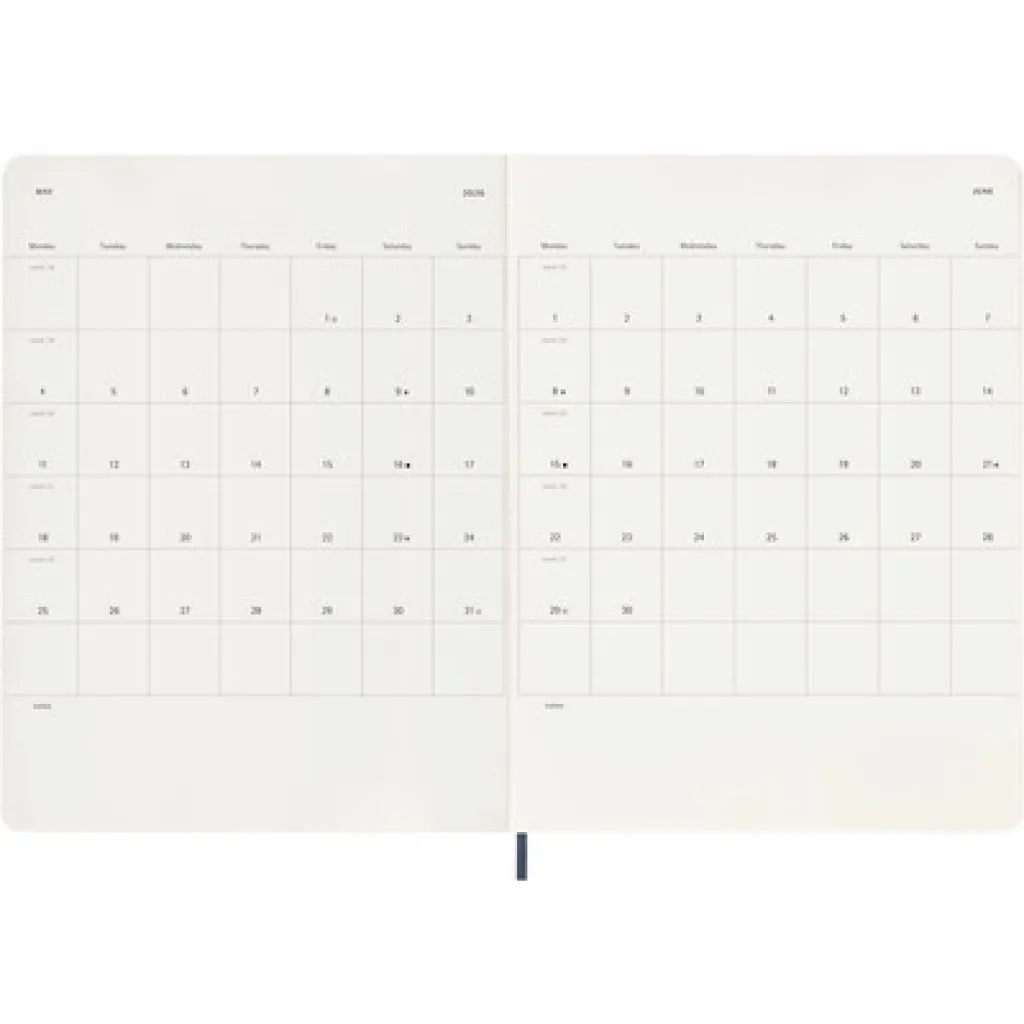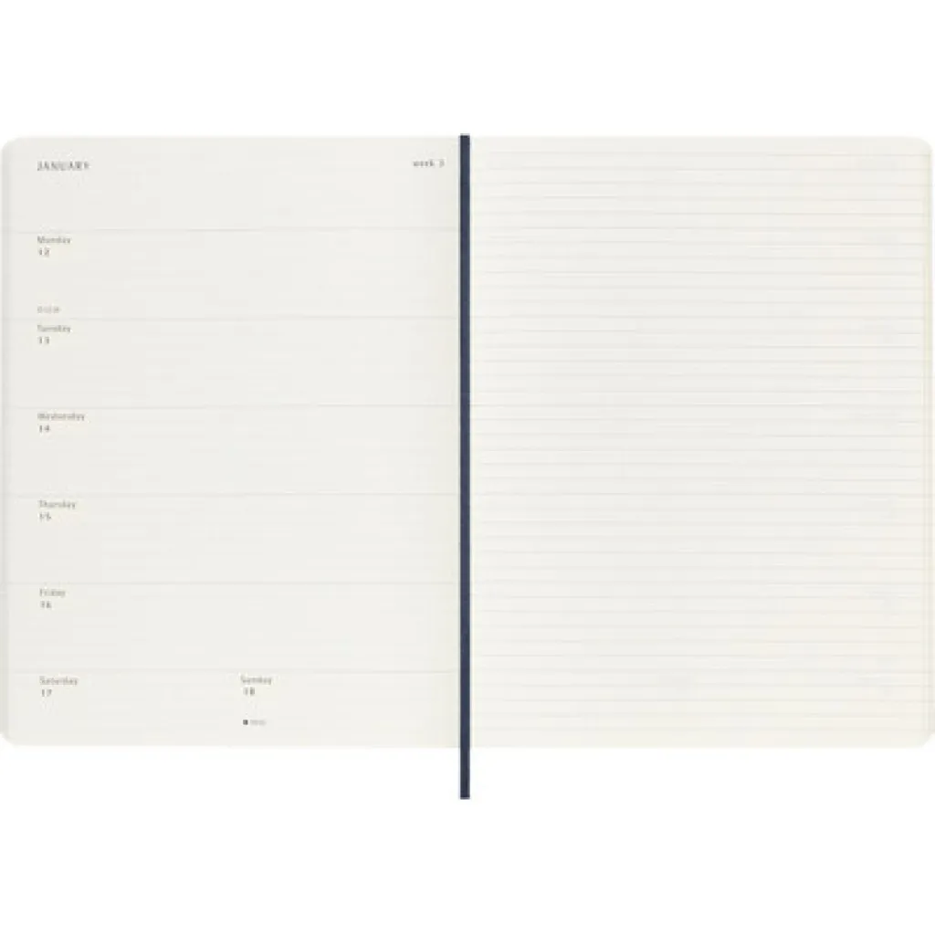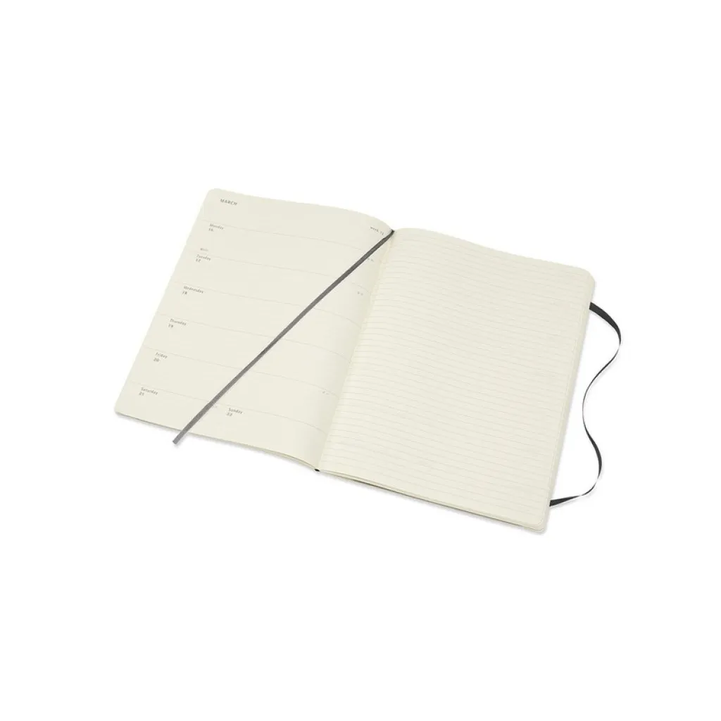 MOLESKINE diary with notebook (XL) soft cover, weekly (144 pg.), ribbon marker and elastic band for closing