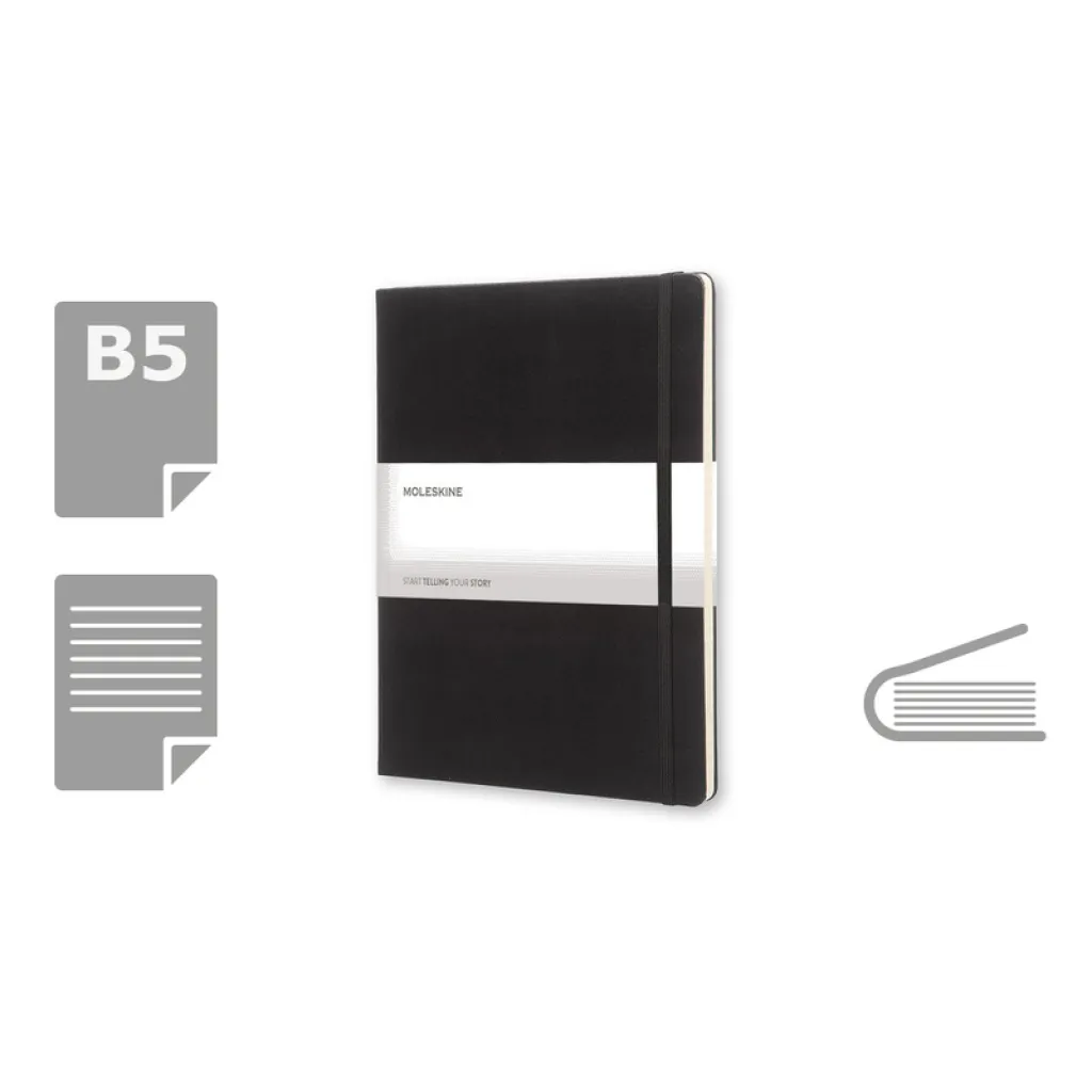 MOLESKINE notebook (XL) hard cover, 192 lined pages, inner pocket, ribbon marker and elastic band for closing