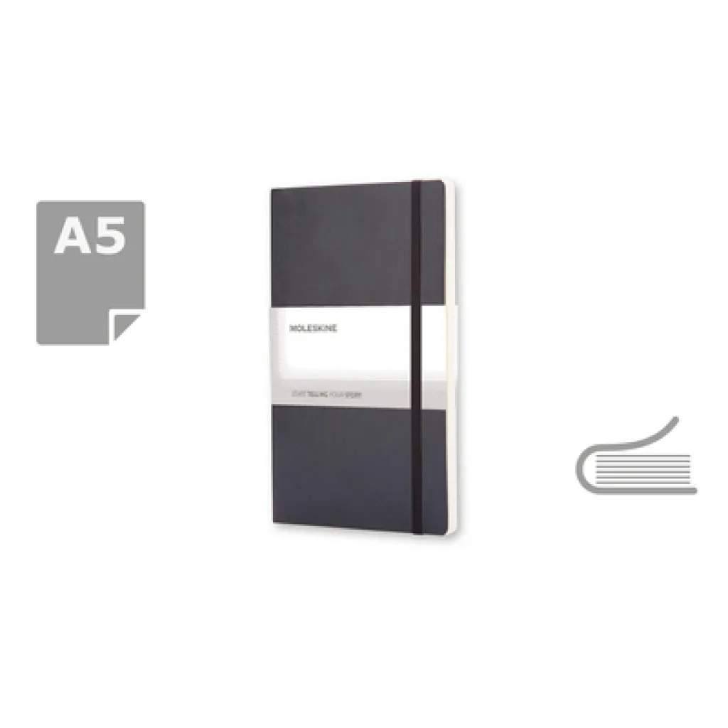 MOLESKINE notebook (approx. A5, large), 192 blank pages, soft cover, inner pocket, ribbon marker and elastic band for closing
