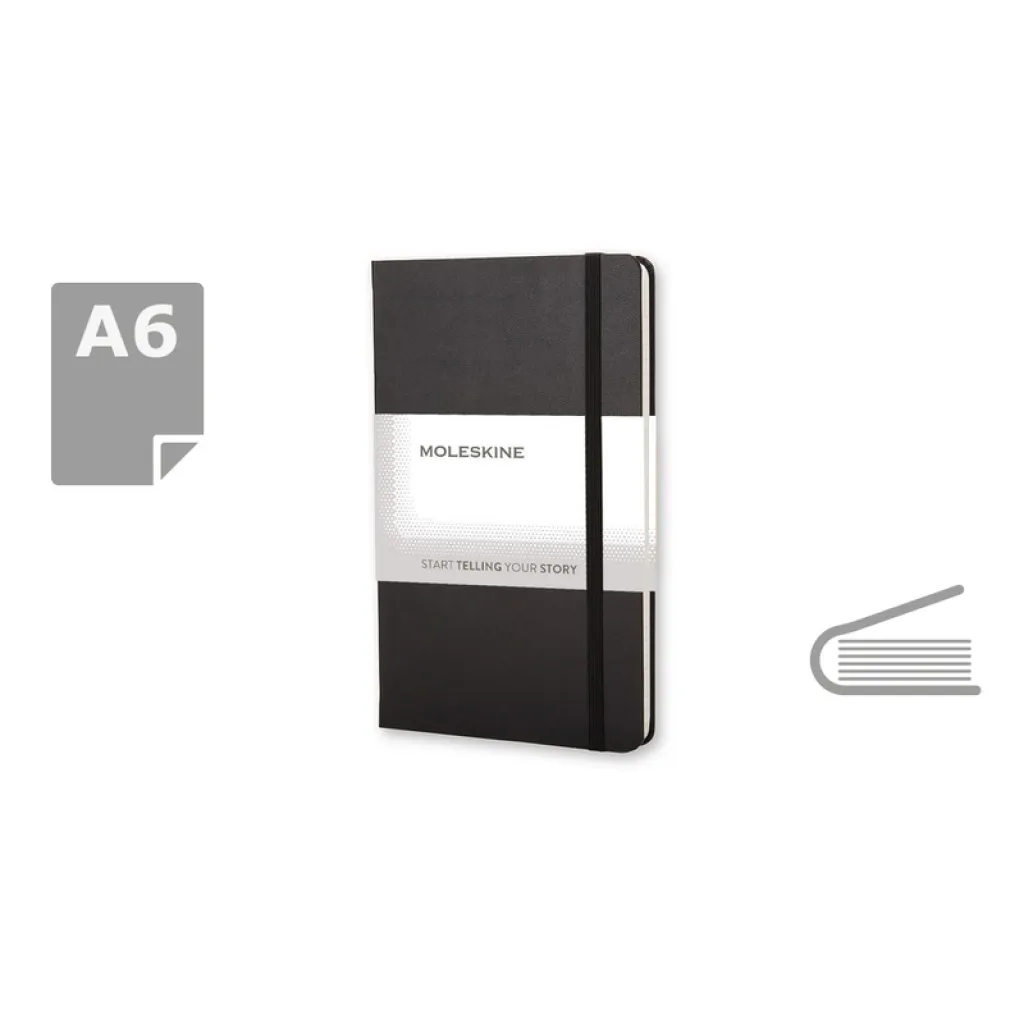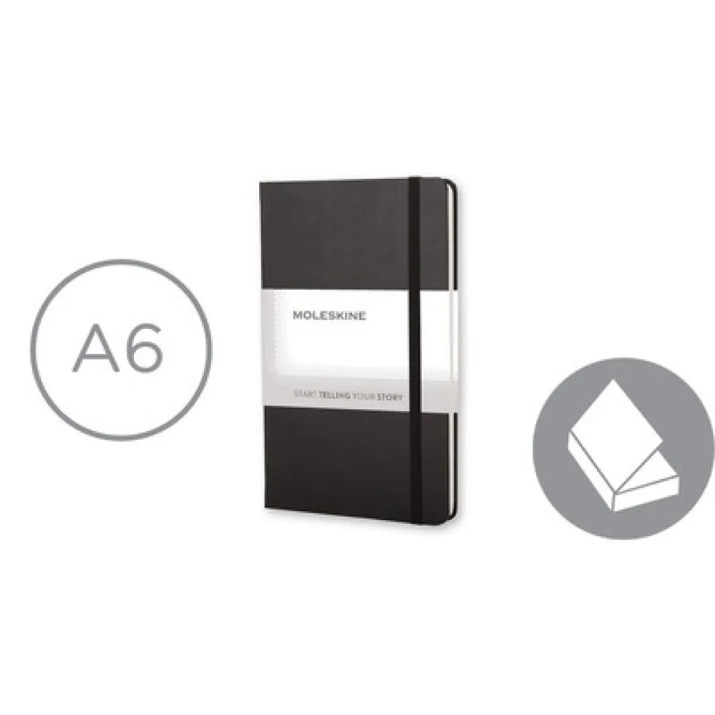 MOLESKINE notebook (approx. A6, pocket), 192 blank pages, hard cover, inner pocket, ribbon marker and elastic band for closing