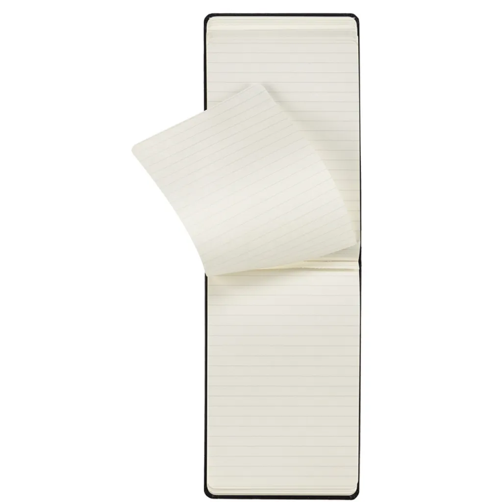 MOLESKINE REPORTER notebook (approx. A6, pocket), 192 lined pages, hard cover, inner pocket, elastic band for closing, last 12 sheets are detachable