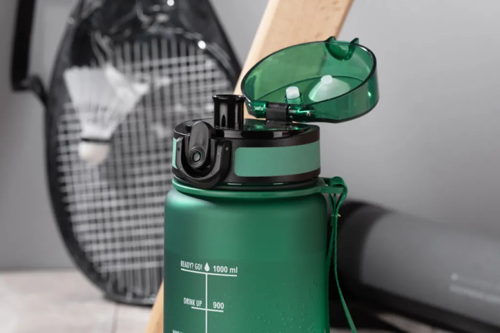 The MOTIVA motivational bottle has a capacity of as much as 1000 ml, so that you can have a large amount of liquid at hand. A motivational measure in English is printed on the wall of the bottle. With the use of this bottle, you can accurately track the amount of drunk water. Reaching for another sip of water becomes fun!