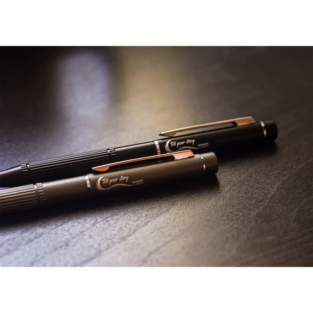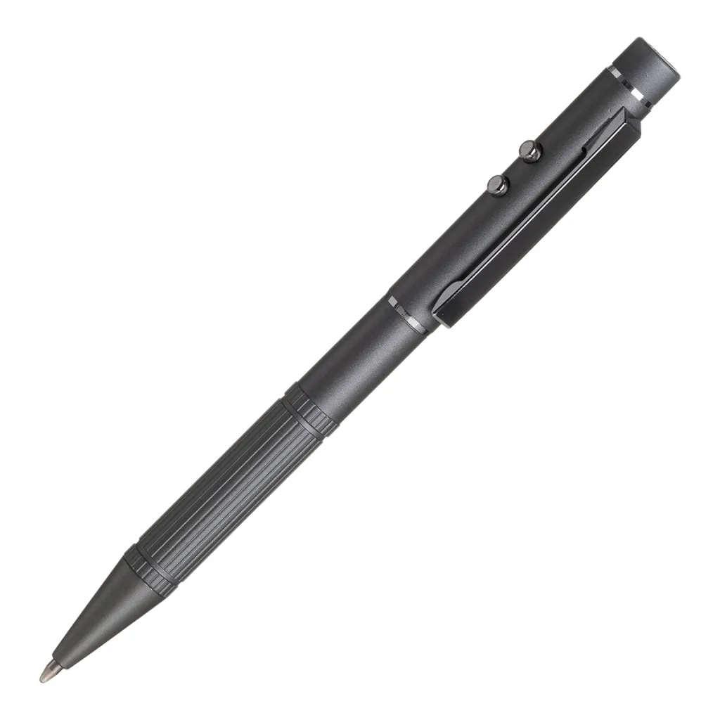 Ballpen (blue refill) with laser pointer and LED torch. 3 x LR41 batteries included.