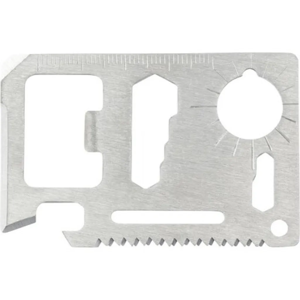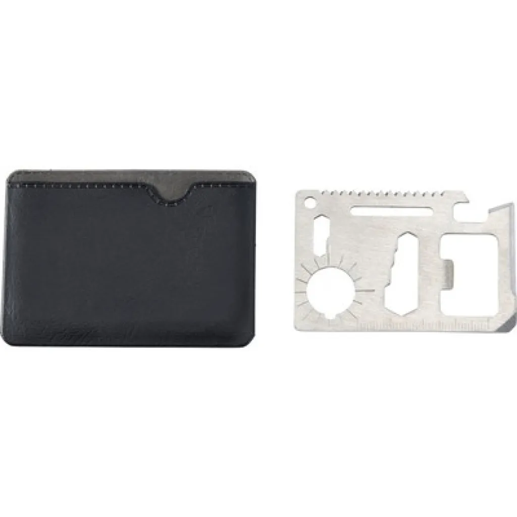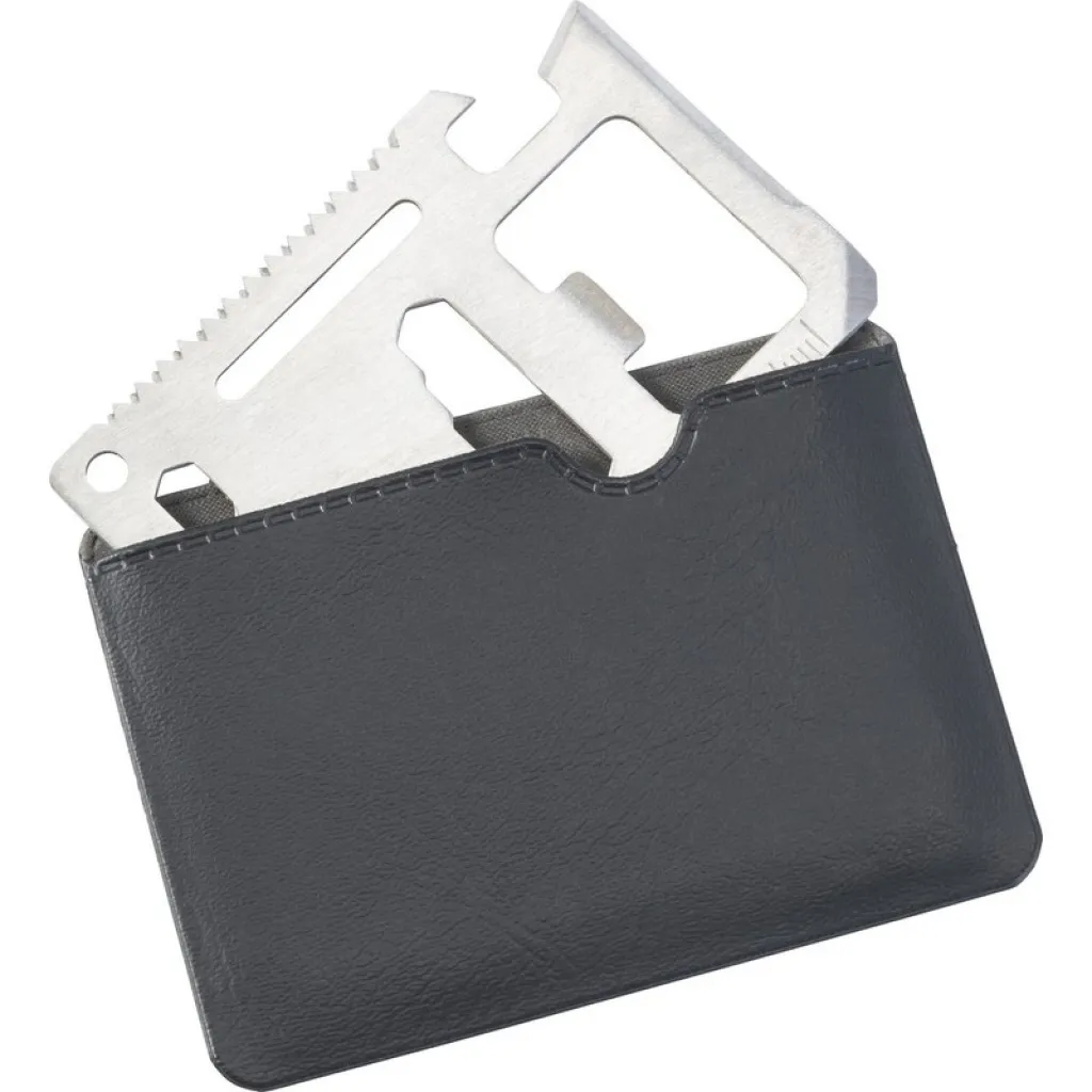 Multifunctional tool, 11 functions: knife, can opener, butterfly nut, saw, screwdriver, bottle opener, ruler and different sized wrenches, pouch included