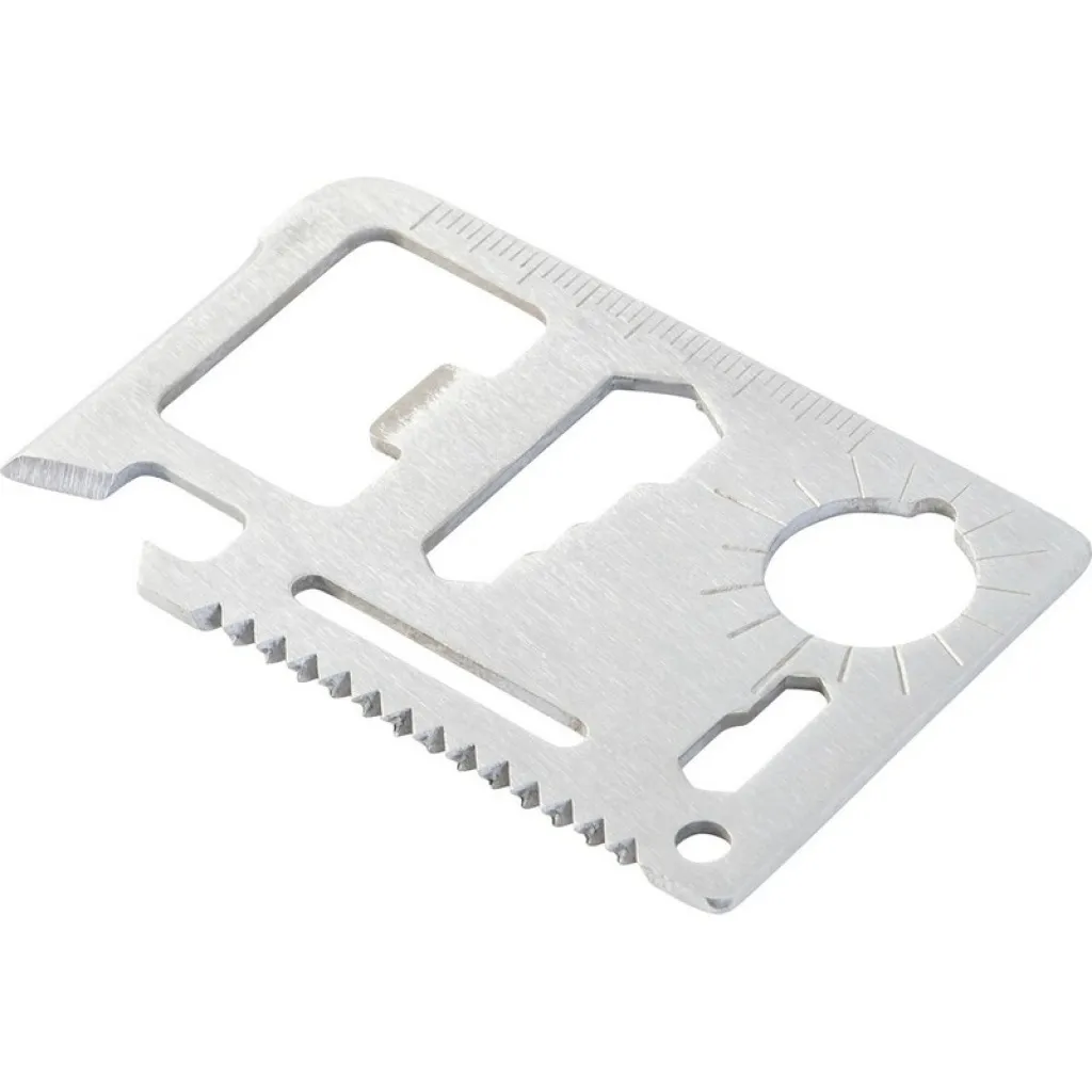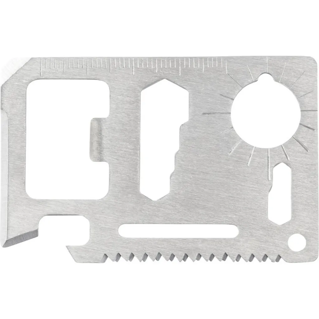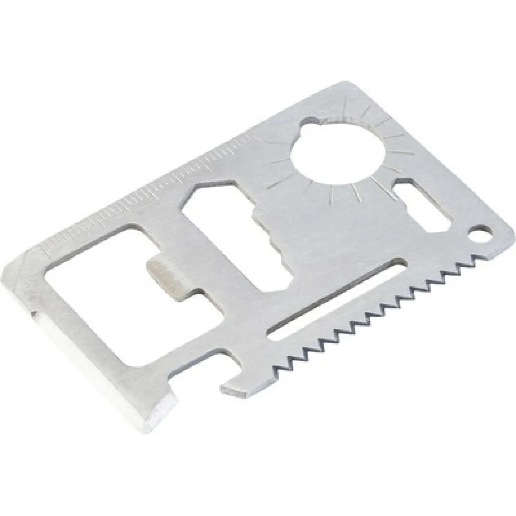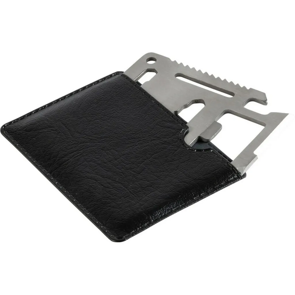 Multifunctional tool, 11 functions: knife, can opener, butterfly nut, saw, screwdriver, bottle opener, ruler and different sized wrenches, pouch included