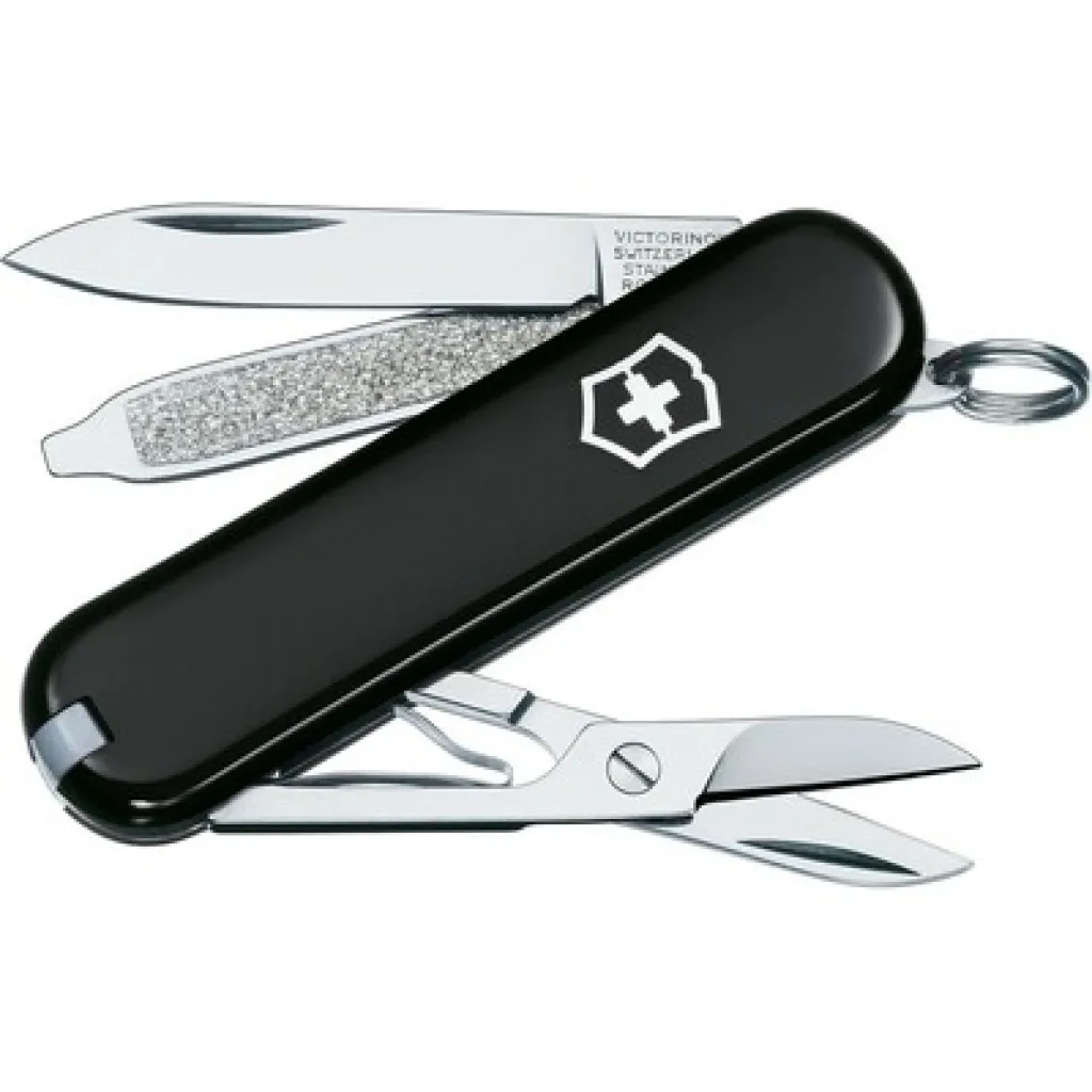 Multitool Victorinox Classic SD, with 7 functions: toothpick, scissors, tweezers, nail file, screwdriver (2.5 mm), key ring, and a small blade, packaged in gift box, product made from ABS and metal
