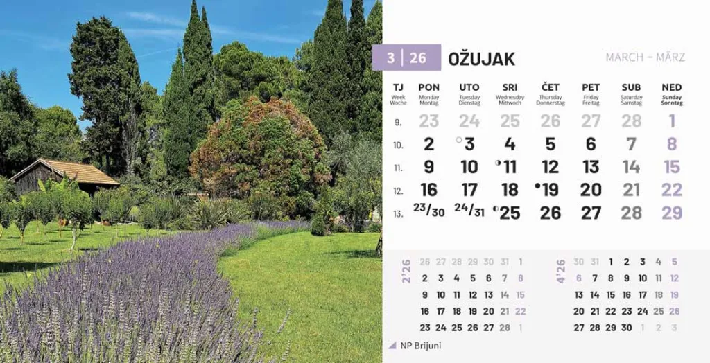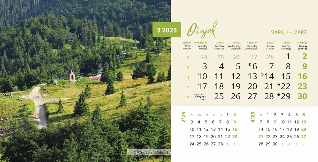 "NACIONALNI PARKOVI HRVATSKE" 13 sheets, format: 20,5x14,5 cm, desk calendar, envelope, P/50