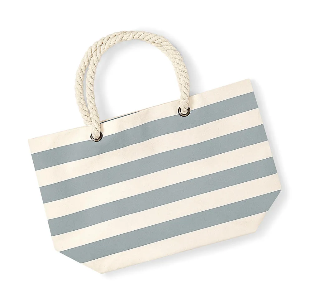 ·407 g/m² ·100% Cotton (Brushed Canvas) ·Durable fabric ·Heavyweight rope carry handles (length: 60 cm) ·Printed stripe design ·Capacity: 22 Litres ·Dimensions: 56 x 35 x 18 cm ·Max. embroidery: 18 tubular hoop ·Max. print area: 50 x 28 cm.