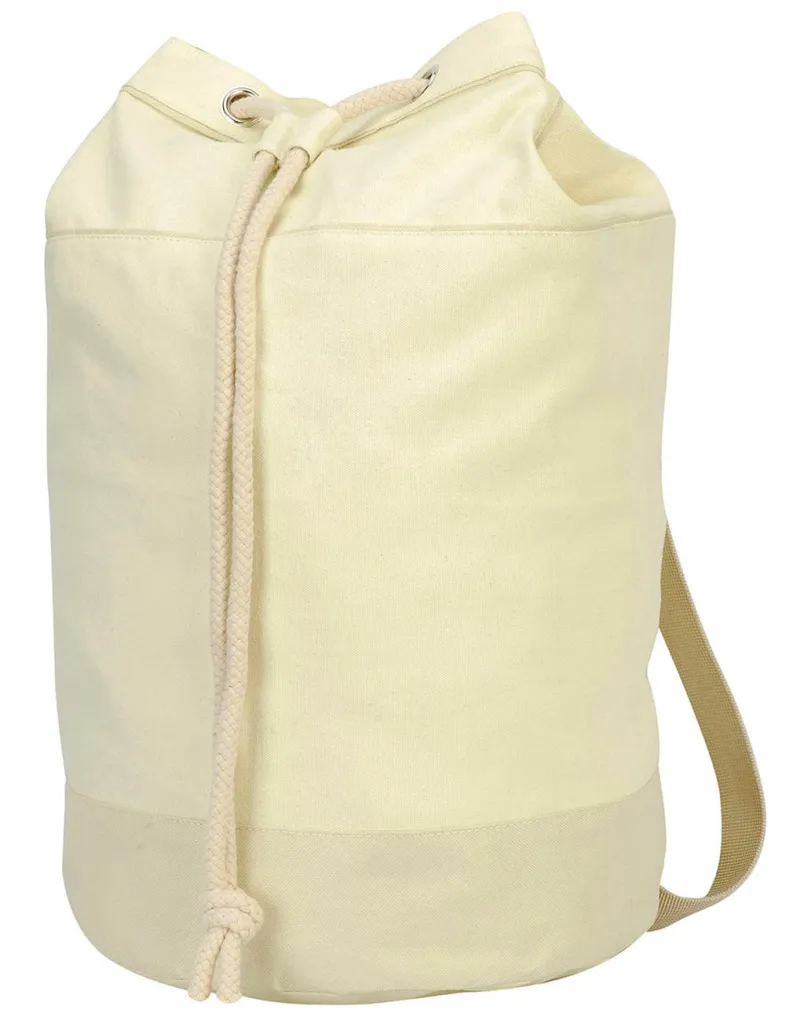 ·14 oz Cotton ·75% Cotton, 25% Polyester ·Stylish duffle bag ·One large compartment with study cotton cord pull closure ·Reinforced metal eyelets ·Double-shoulder strap ·Suitable for screen printing/transfer printing or embroidery ·Capacity: 30 Litres ·Dimensions: 30 x 50 x 30 cm ·Maximum embroidery: 18 tubular hoop ·Decoration area: 18 x 20 cm.