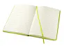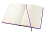 A5 notebook with a colourful rubber band. It contains 80 ecru sheets with lines. Logo might be printed on the cover.