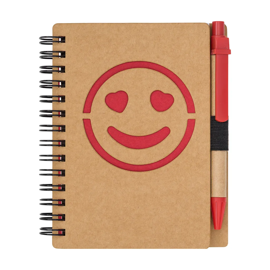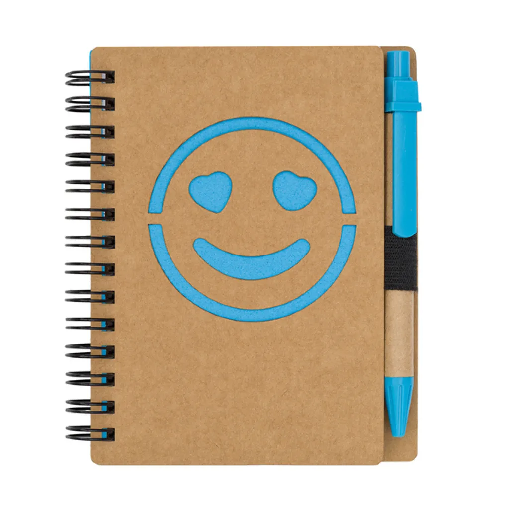 70-page notebook made of 70g/m2 paper, blank pages. It has a metal spiral and a pen. Blue pen refill,
