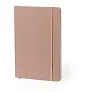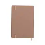 Notebook (approx. A5, 80 lined sheets) made from recycled cardboard and fruit paper, hard cover, ribbon marker and elastic band for closing.