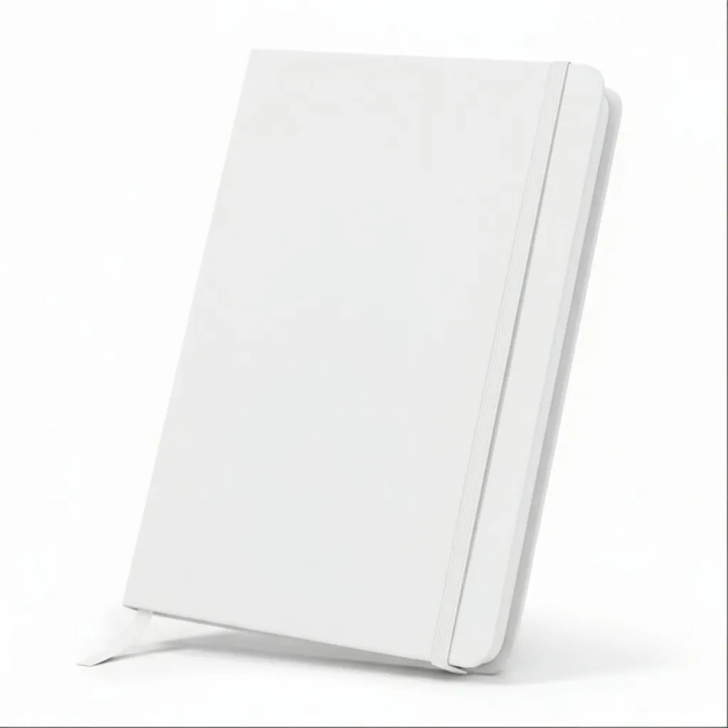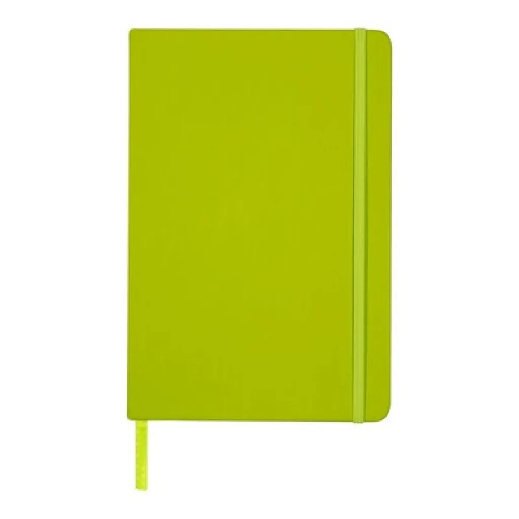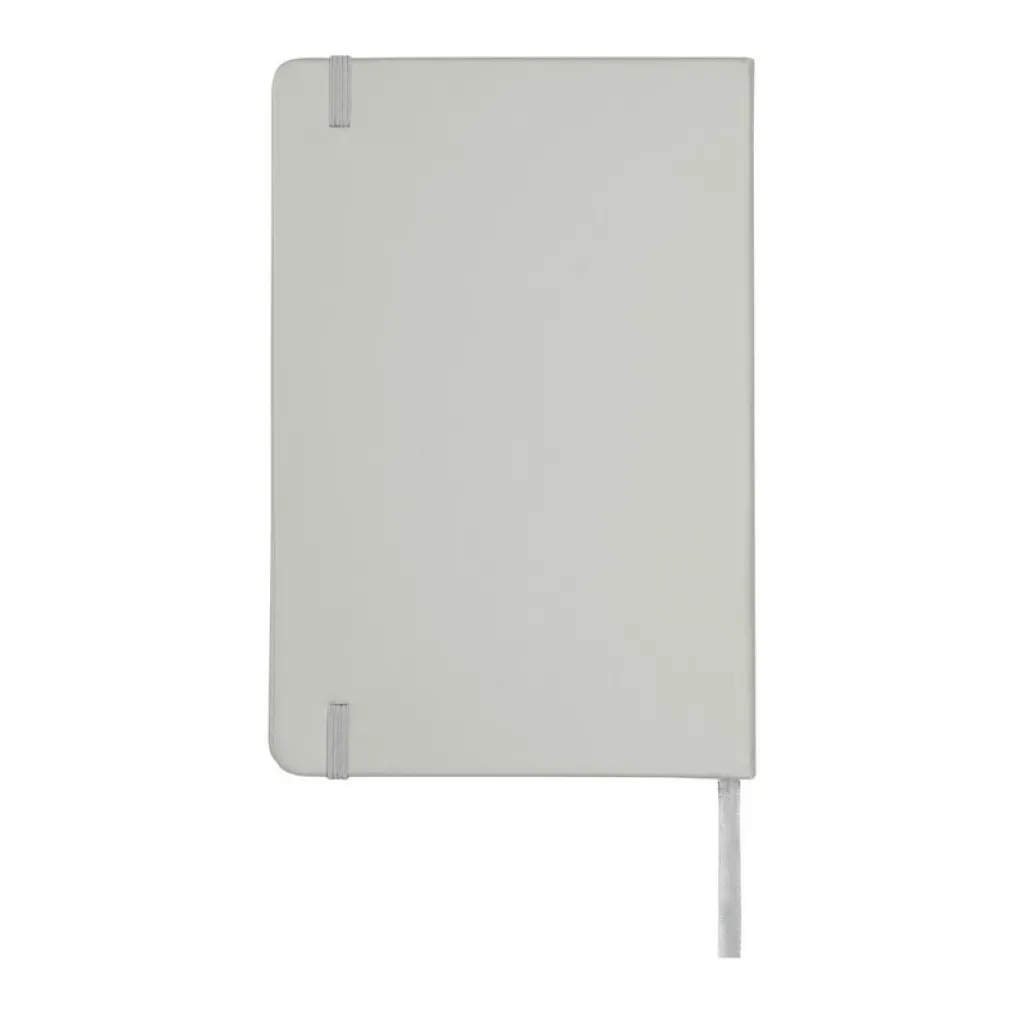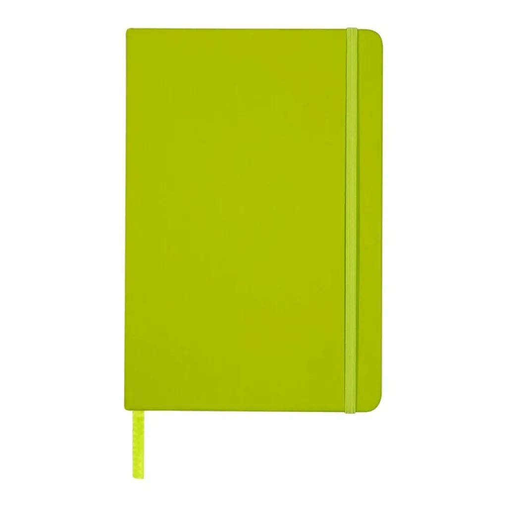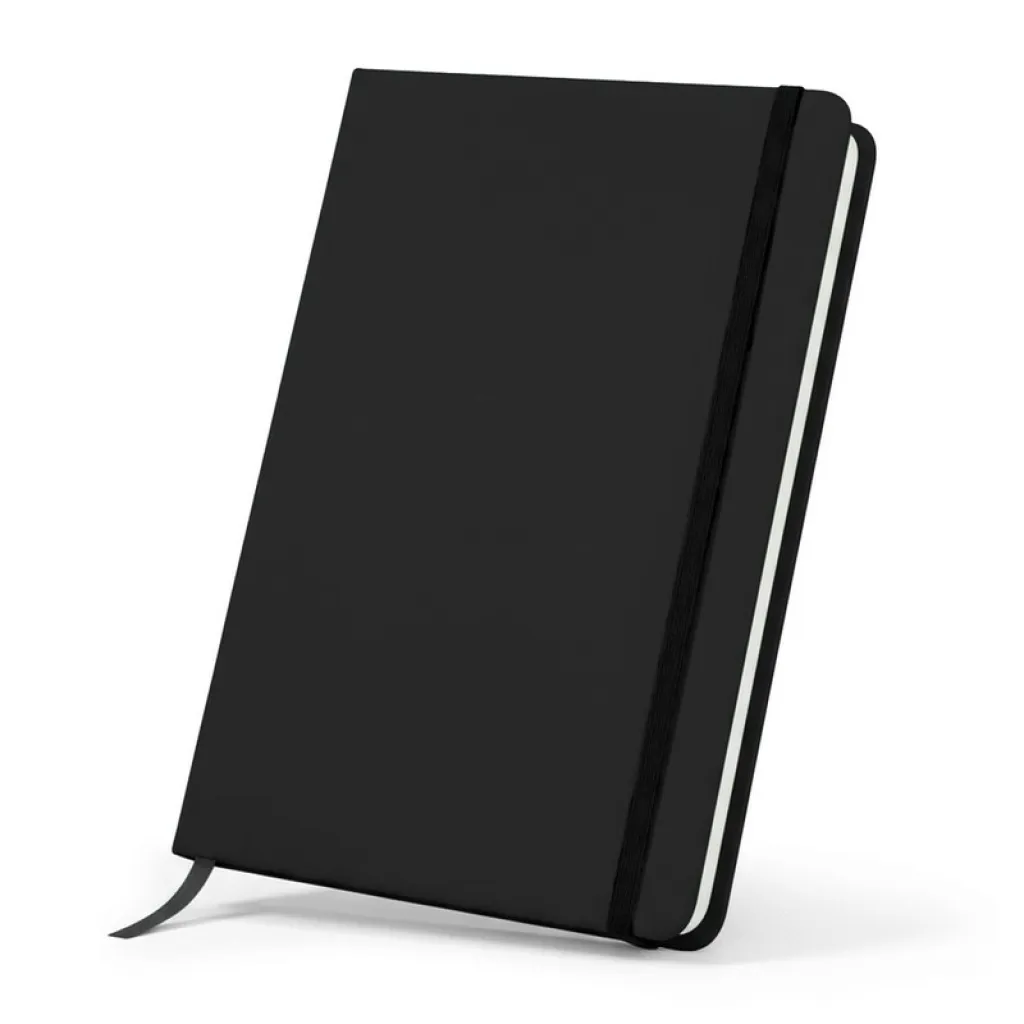 Notebook (approx. A5, 96 lined sheets), ribbon marker and elastic band for closing