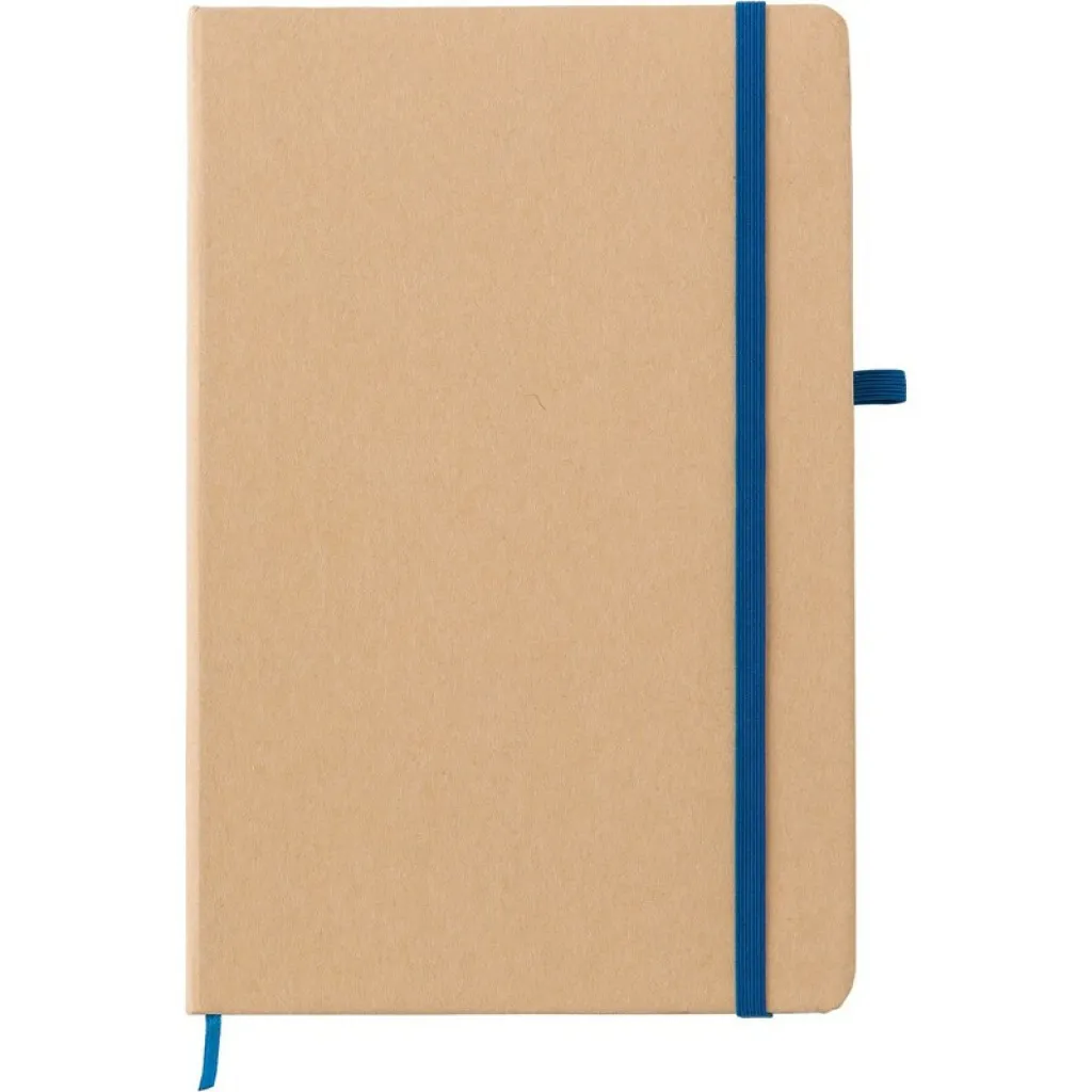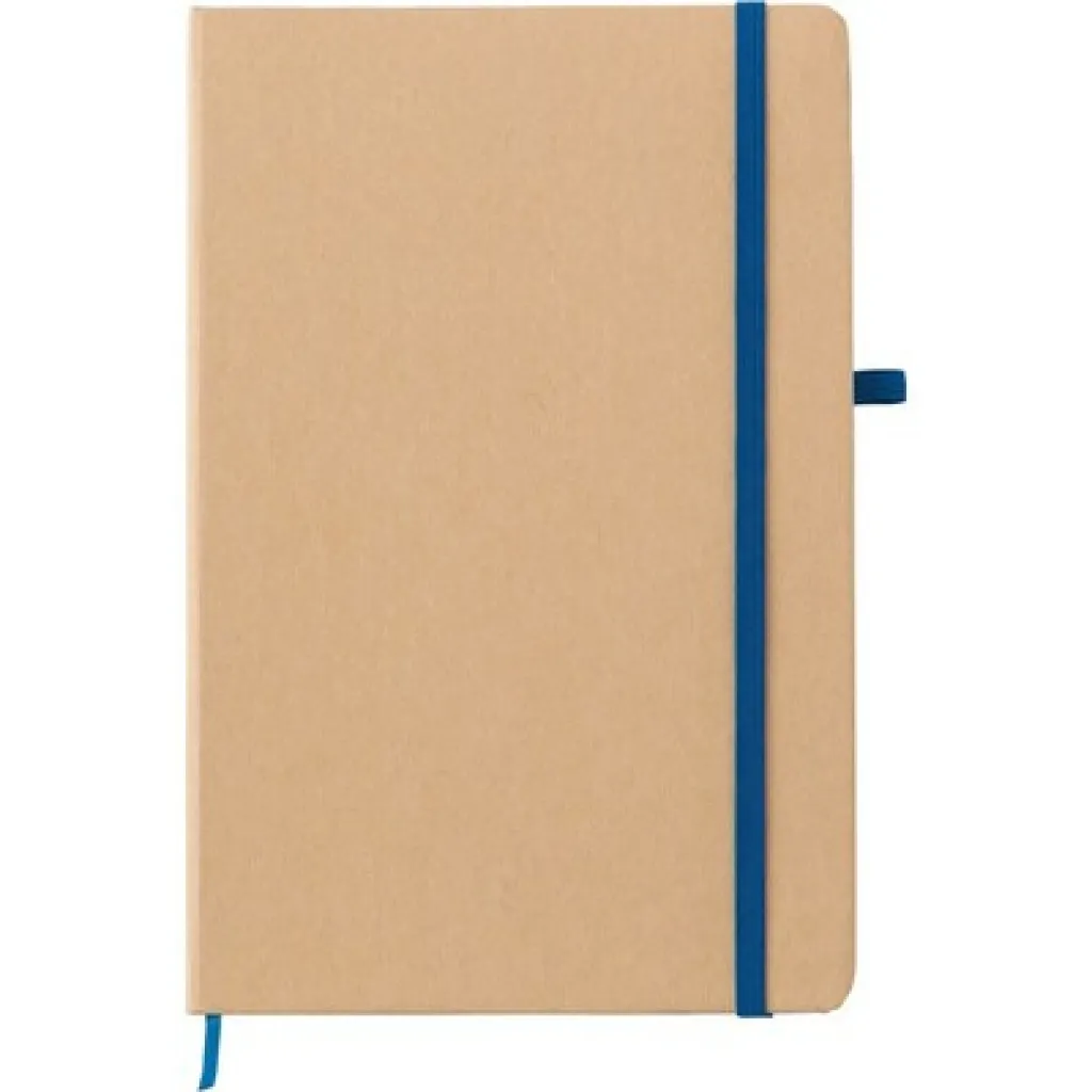 Notebook (approx. A5, 80 lined sheets made of stone paper), hard cover made of craft paper, elastic band for closing, pen loop. Stone paper is made of mix of 80% calcium carbonate and 20% HDPE, which makes it resistant to splashing, dirt and tearing. The product is environmentally friendly, because water and wood are not used during production.