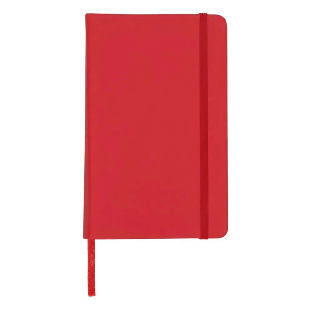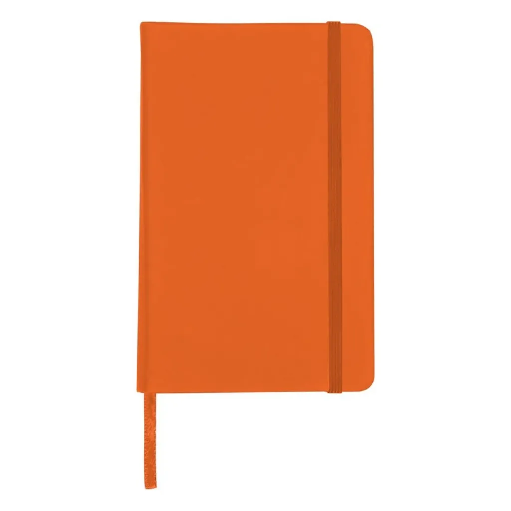 Notebook (approx. A6, 96 lined sheets), elastic band for closing and ribbon marker
