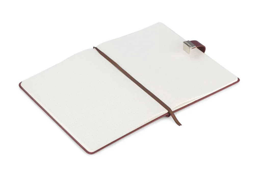 IDELO is a notebook in an elegant, classic cover made of eco-leather. It contains 80 dotted sheets and a practical ribbon that acts as a bookmark. The pages in the notebook are made of FSC-certified paper. B5 format. Packed in a kraft box.