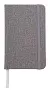 Textured PU leather covered notebook with rubber strap and 80 lined sheets. A6 size.