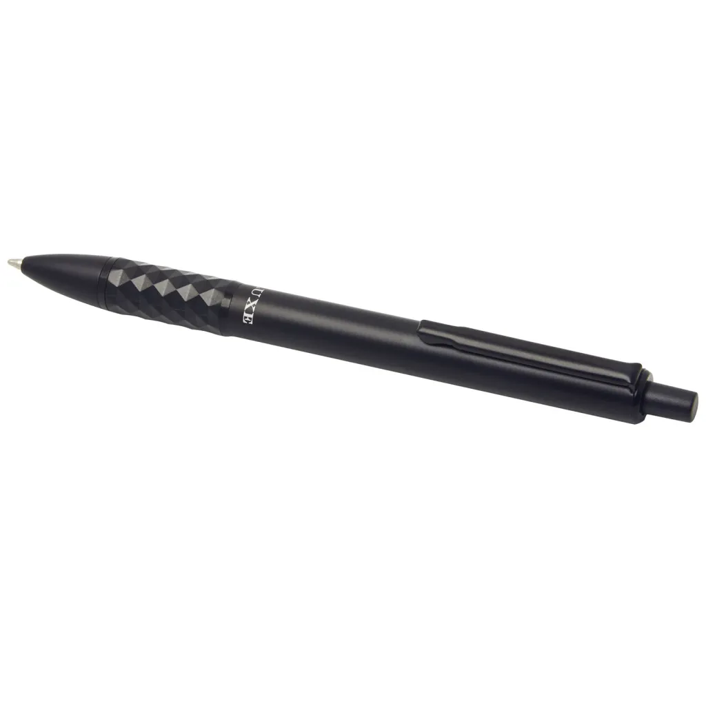 Exclusive A5 sized design notebook with Thermo PU cover, black ribbon page marker, magnetic closure and 80 sheets of 80gsm cream lined paper. Paired with the Tactical click action ballpoint pen. Both items packed in a ''LUXE'' gift box. Size notebook: 13.5 x 20.5 cm. Length pen: 14 cm. Diameter pen: 1.05cm.