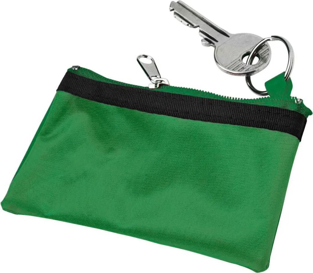 Nylon key wallet with metal ring and zipper.