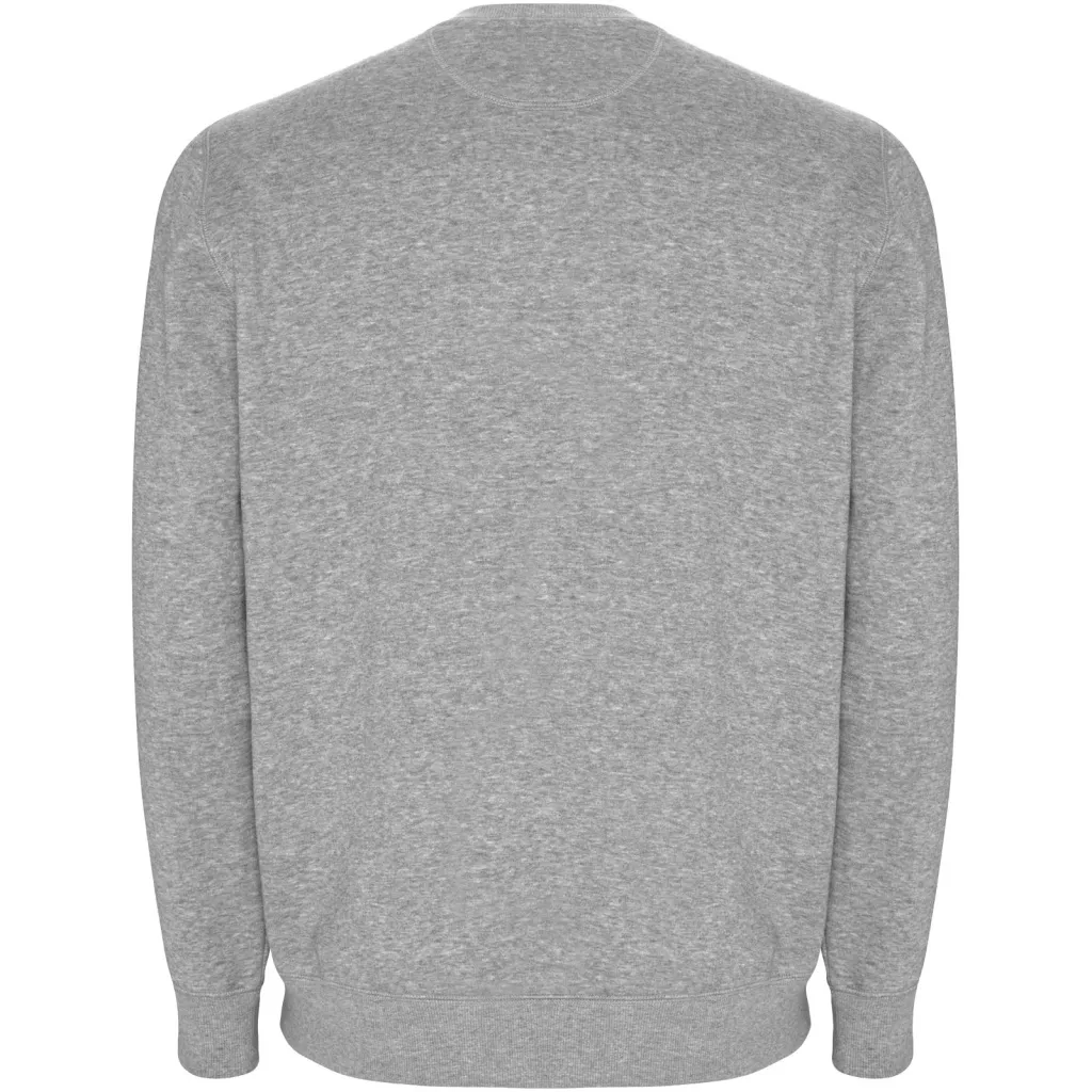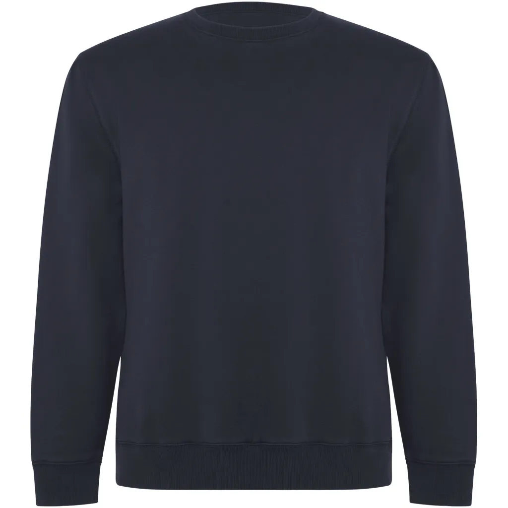 Unisex sweater in organic combed cotton and recycled polyester. Collar, cuffs and hem in 2x1 ribbed fabric. Decorative overlocked seams in shoulders, armholes, collar, cuffs and hem. Half moon seam on inner back collar. Removable label. Individual recycled packing. The model is 190 cm and is wearing size L.