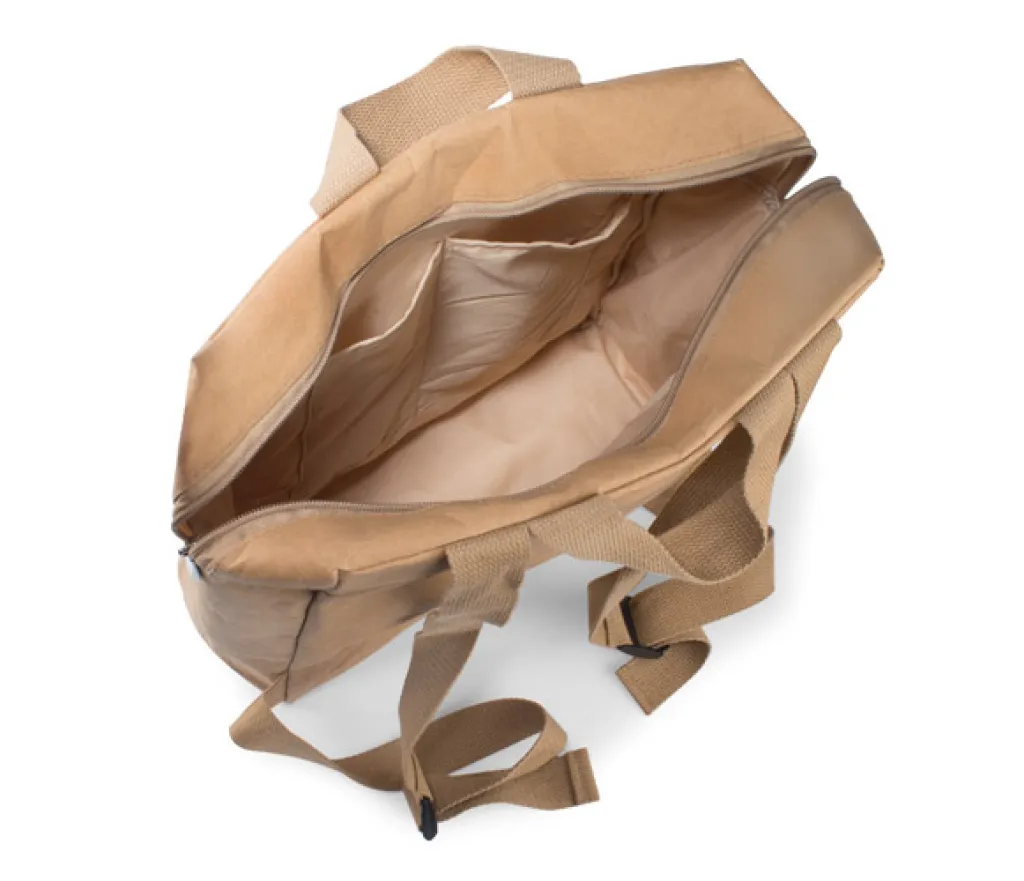 The CHARTI backpack made of kraft paper impresses with its simple form and natural design. The spacious compartment features a zip-locked pocket and two open pockets. The backpack can be washed at 30°C.