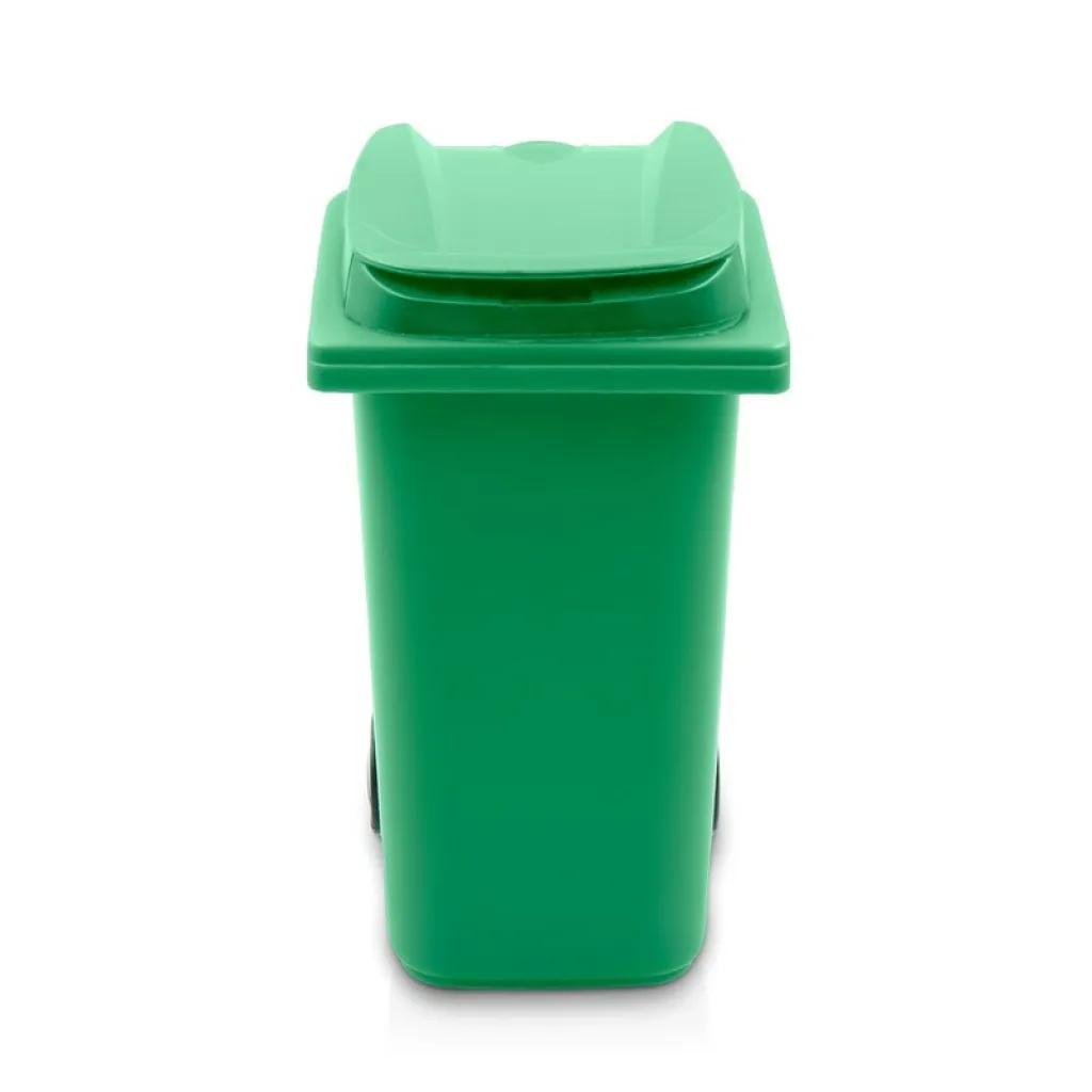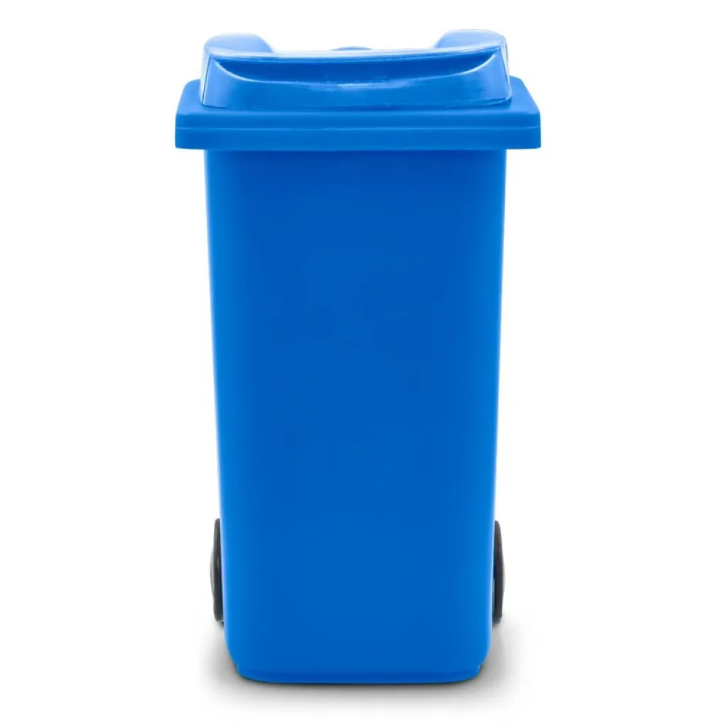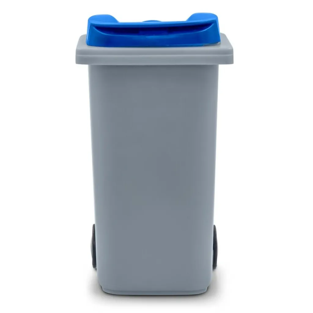 Pen holder with wheels in the shape of a container, with lid and matte finish, product made of PP