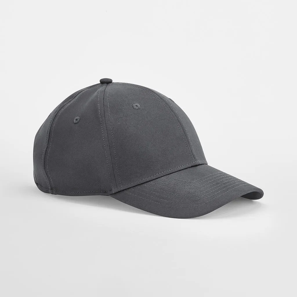 ·100% Polyester (Recycled) ·Sweatband: 100% Polyester (Coolmax® fabric) ·Lightweight breathable fabric ·6 panels ·Stitched ventilation eyelets ·Precurved peak ·Self fabric strap with tri-glide buckle ·TearAway label for ease of rebranding