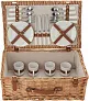 Willow picnic basket for four people, with stainless steel cutlery with plastic handles, four ceramic plates, and four 0,21 ml ceramic mugs.
