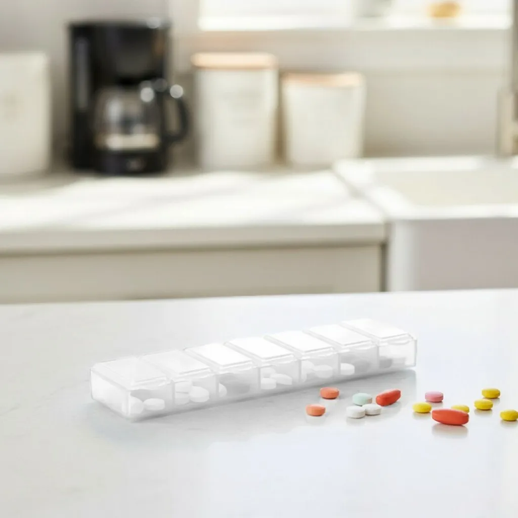 Translucent pill box with 7 compartments