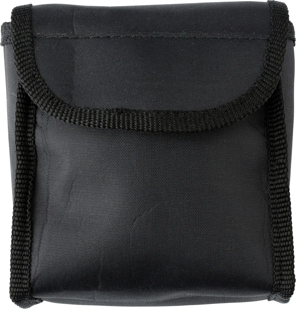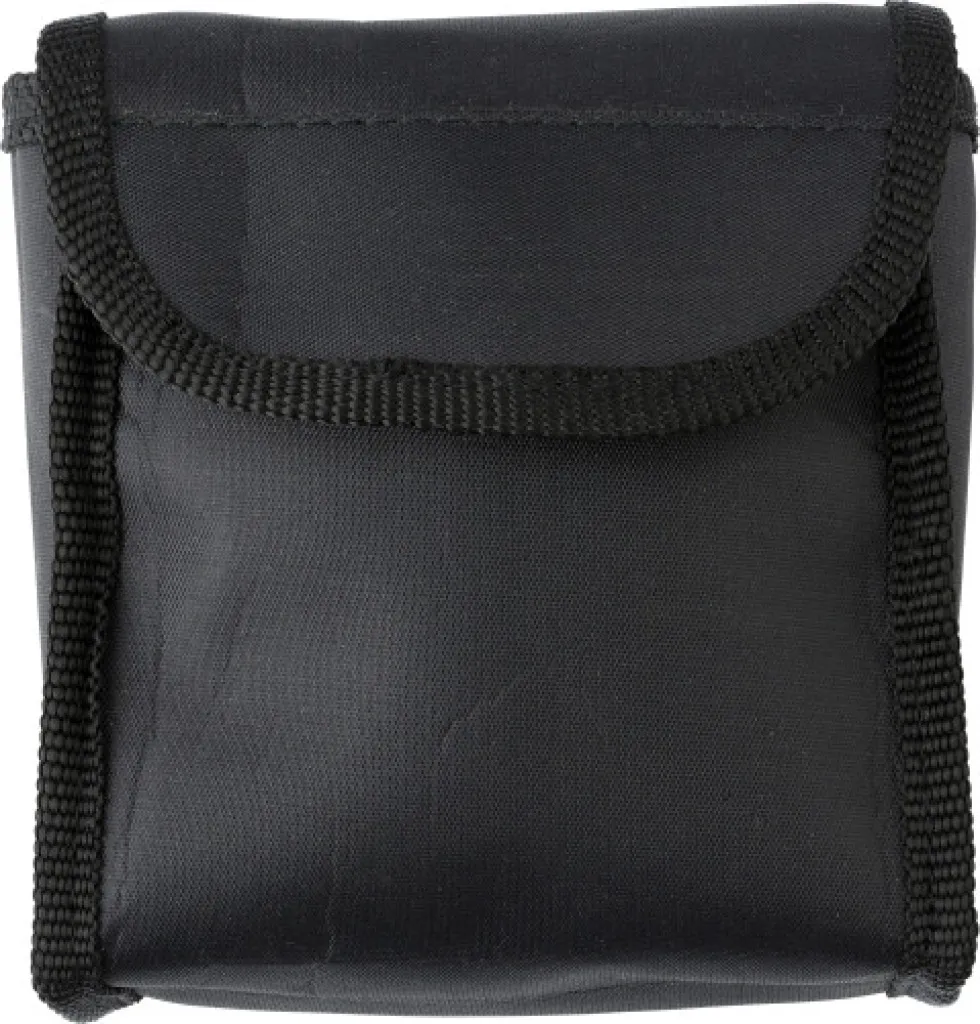 Plastic and rubber binoculars (4 x 30 magnification), includes a cleaning cloth and nylon pouch with belt loop.