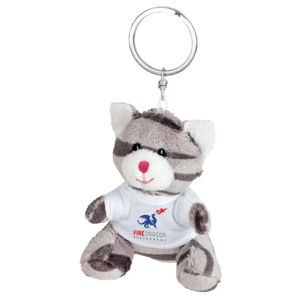 Cat with white T-shirt suitable for printing, keyring (T-shirt packed separately)