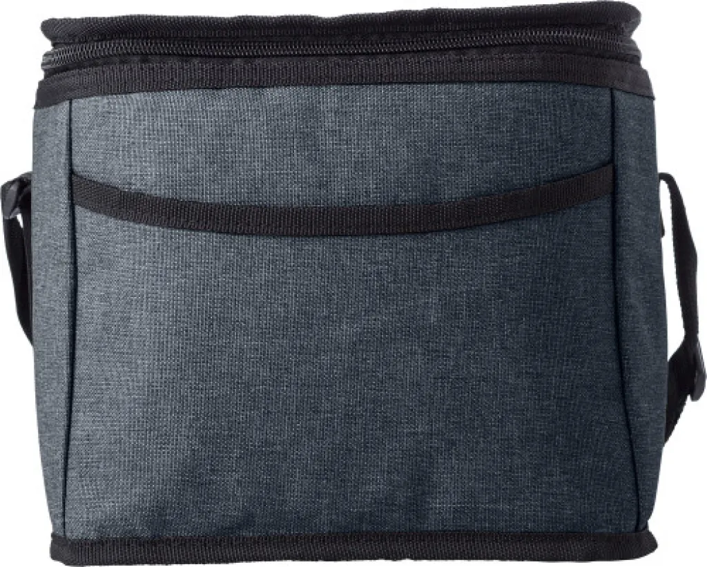 Polycanvas (600D) cooler bag with PEVA interior lining. Main compartment with zipper, fits six soda cans. The strap is adjustable.