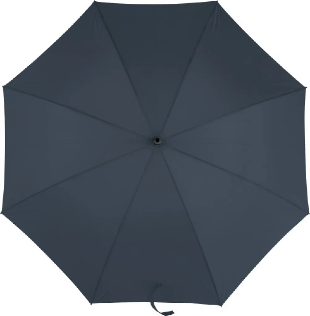 Polyester (190T) automatic umbrella with eight panels. Metal frame and rubber handle, Including sleeve.