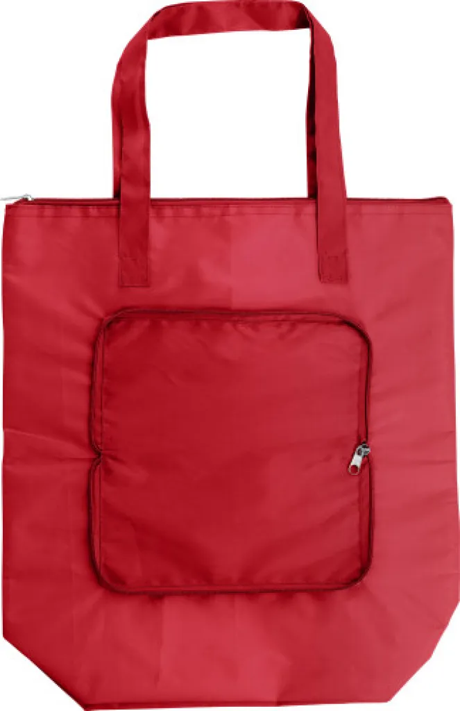 Polyester (210T), foldable cooler bag with aluminium foil interior. Capacity: 13 liters.