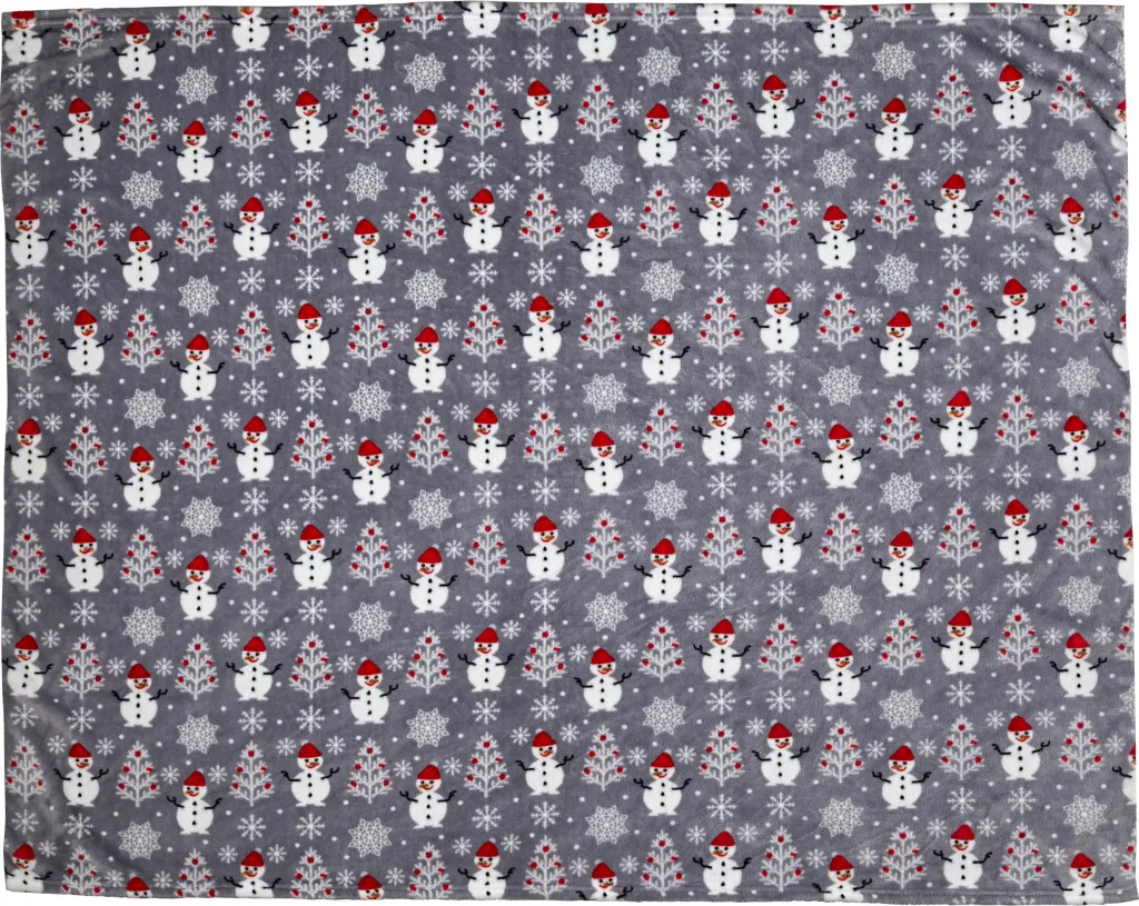 Polyester flannel fleece (260 gr/m²) blanket. The blanket is folded and tied with a ribbon.