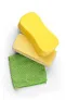 Three-piece carwash set in polyester (600D) pouch. Including: regular sponge, netted sponge, and microfibre towel.