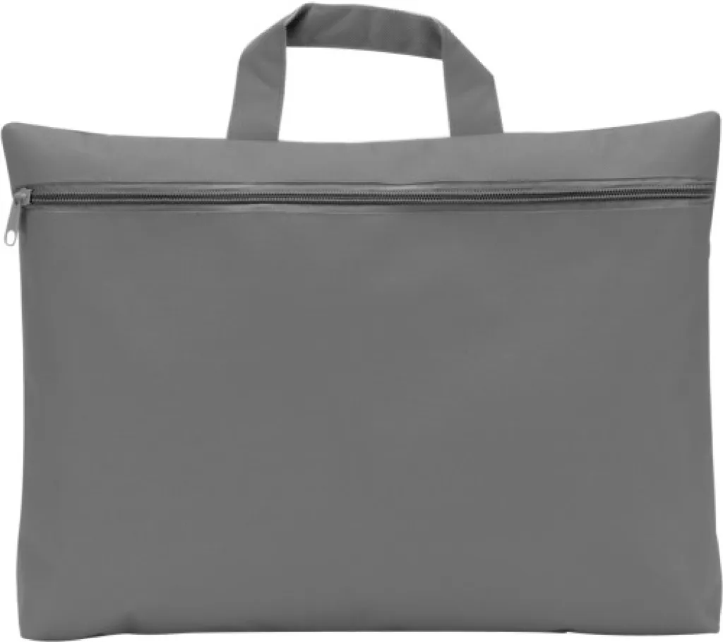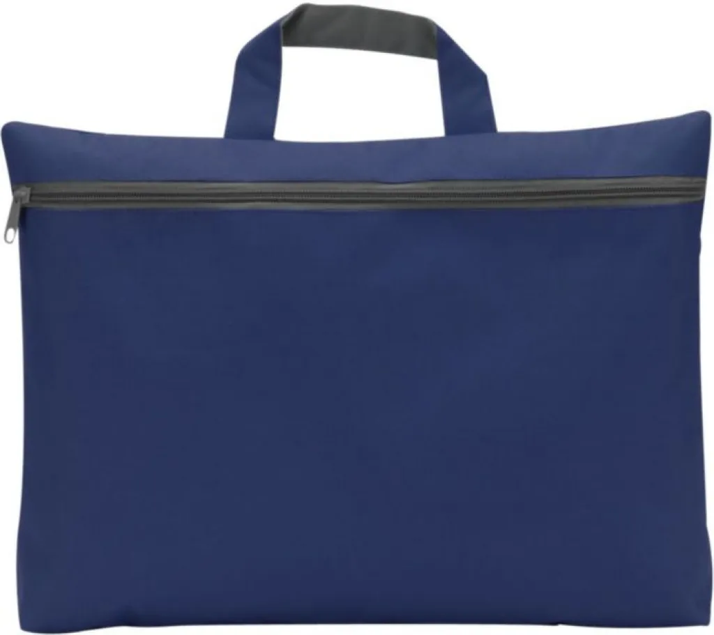 Polyester (600D) conference bag with handle and zippered front pocket.