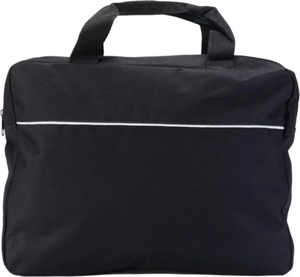 Polyester (600D) document bag with a zippered compartment and two short handles.