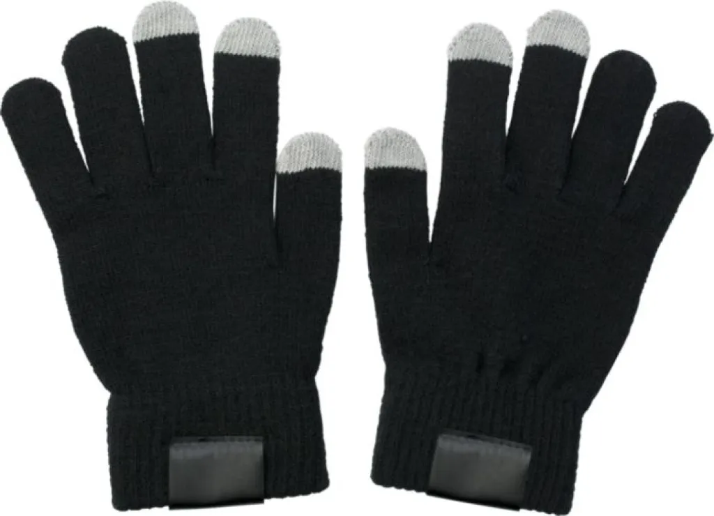 Pair of polyester gloves with three tips (thumb, index finger, and middle finger) suitable for capacitive screens.