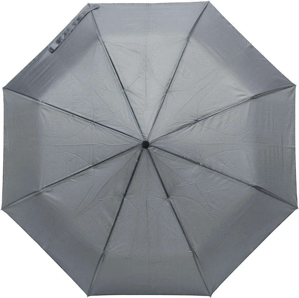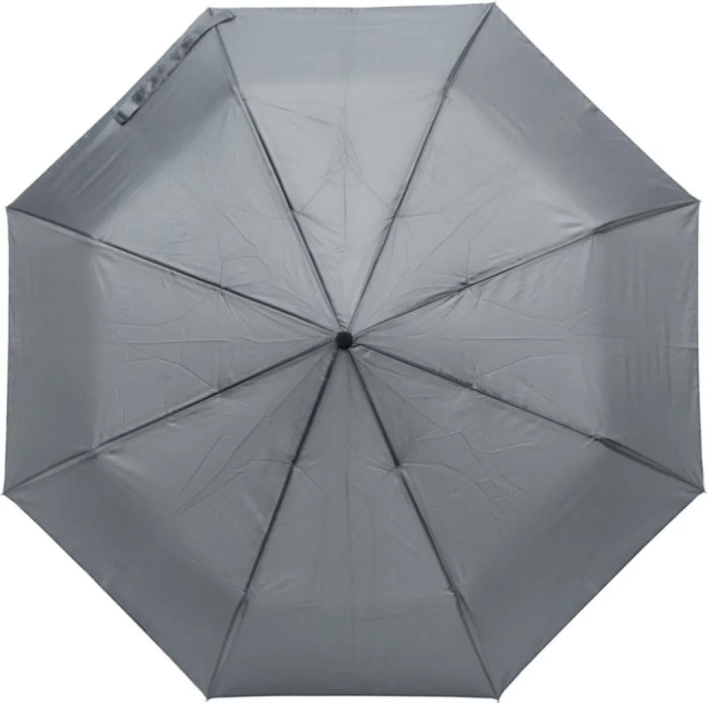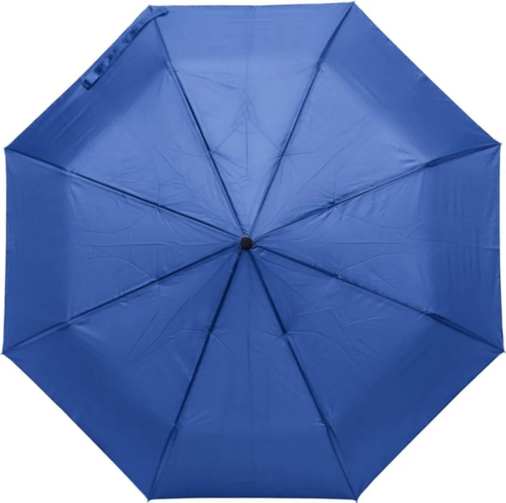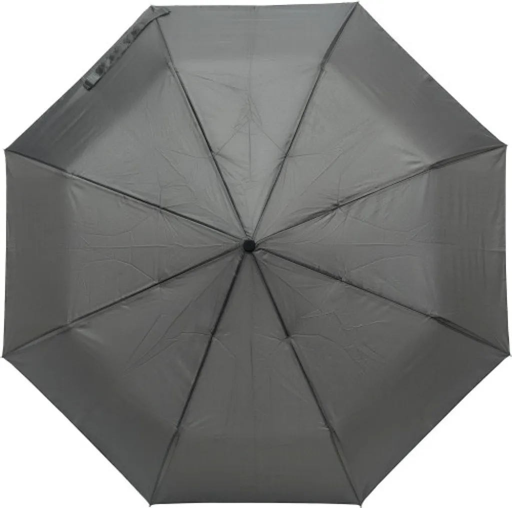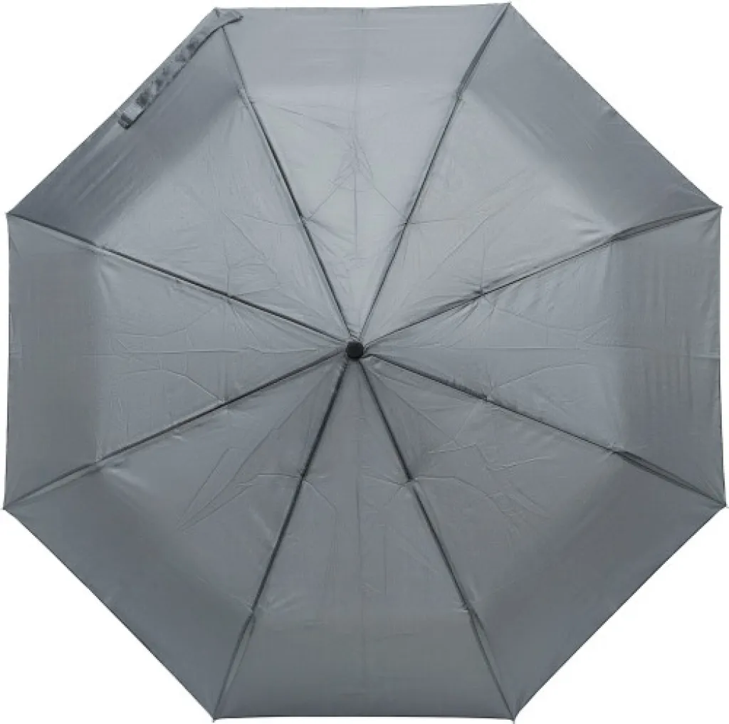 Pongee (180T) automatic, foldable umbrella with eight panels. Plastic handle and metal and fibreglass frame.