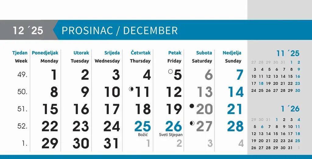 "POSLOVNI SIVO - PLAVI" 13 sheets, format: 20,5x14,5 cm, desk calendar, envelope, P/50