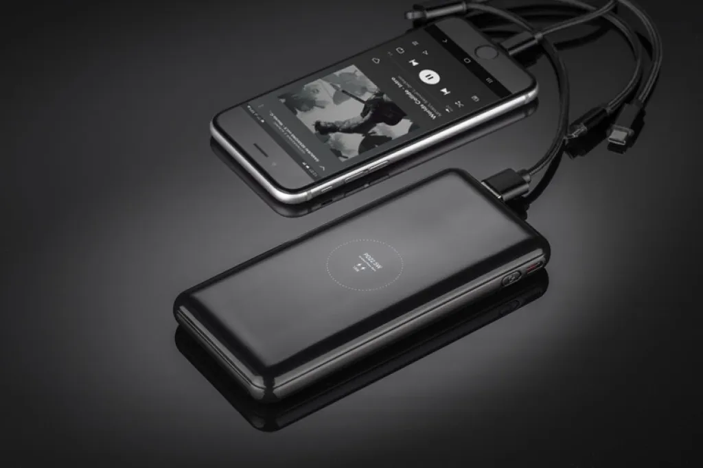 FUERTE 15W is a power bank that has many modern functions. The most important of these is the Power Delivery (PD) fast charging function. This is a fast charging standard that allows you to transfer high power through the USB-C connector. The technology is characterized by an increased power level, in the case of FUERTE it is as much as 15W. The biggest advantage of the Power Delivery standard is the ability to intelligently adjust the charging power to the device being charged. In addition, the power bank has a built-in wireless charger with a maximum power of 15W, a digital display hidden under an elegant mirror housing and a flashlight. The USB-C port is bi-directional - it is both an input and an output, which means that - together with the two USB-A outputs - it is possible to charge up to three devices at the same time. The charging cable is included.