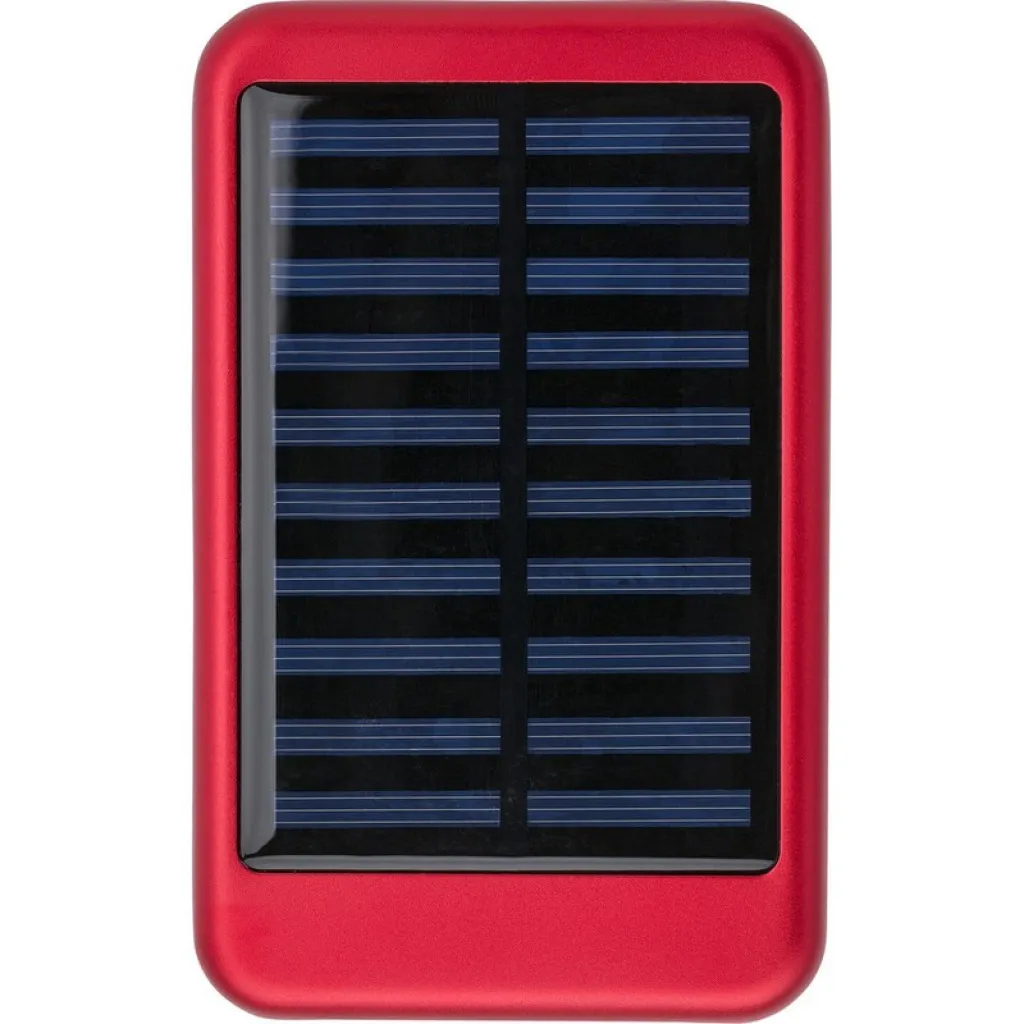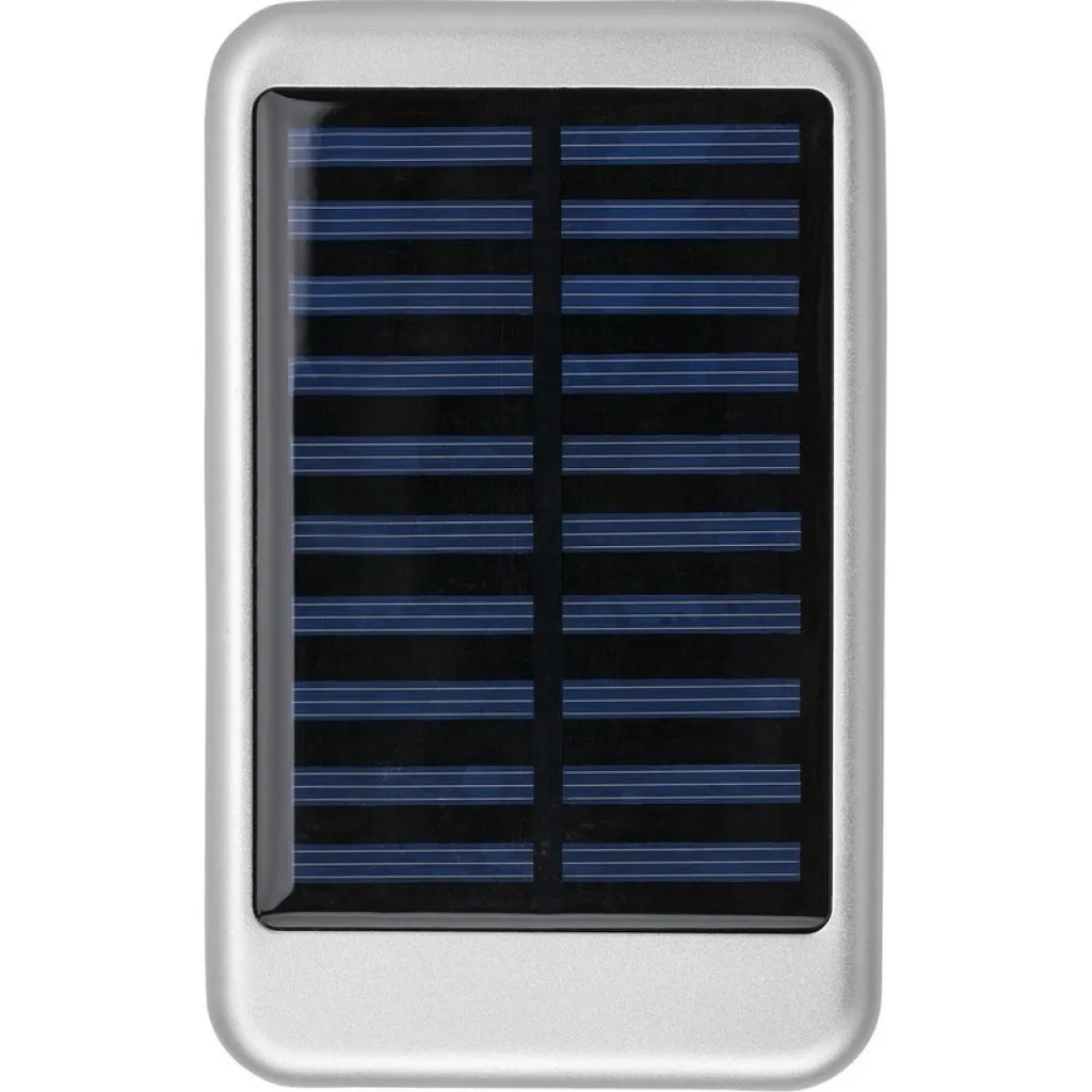 Power bank 4000 mAh, solar charger, blue diodes indicating power level, USB and micro USB port, input DC 5V/1A, output 5V/1A, USB cable included