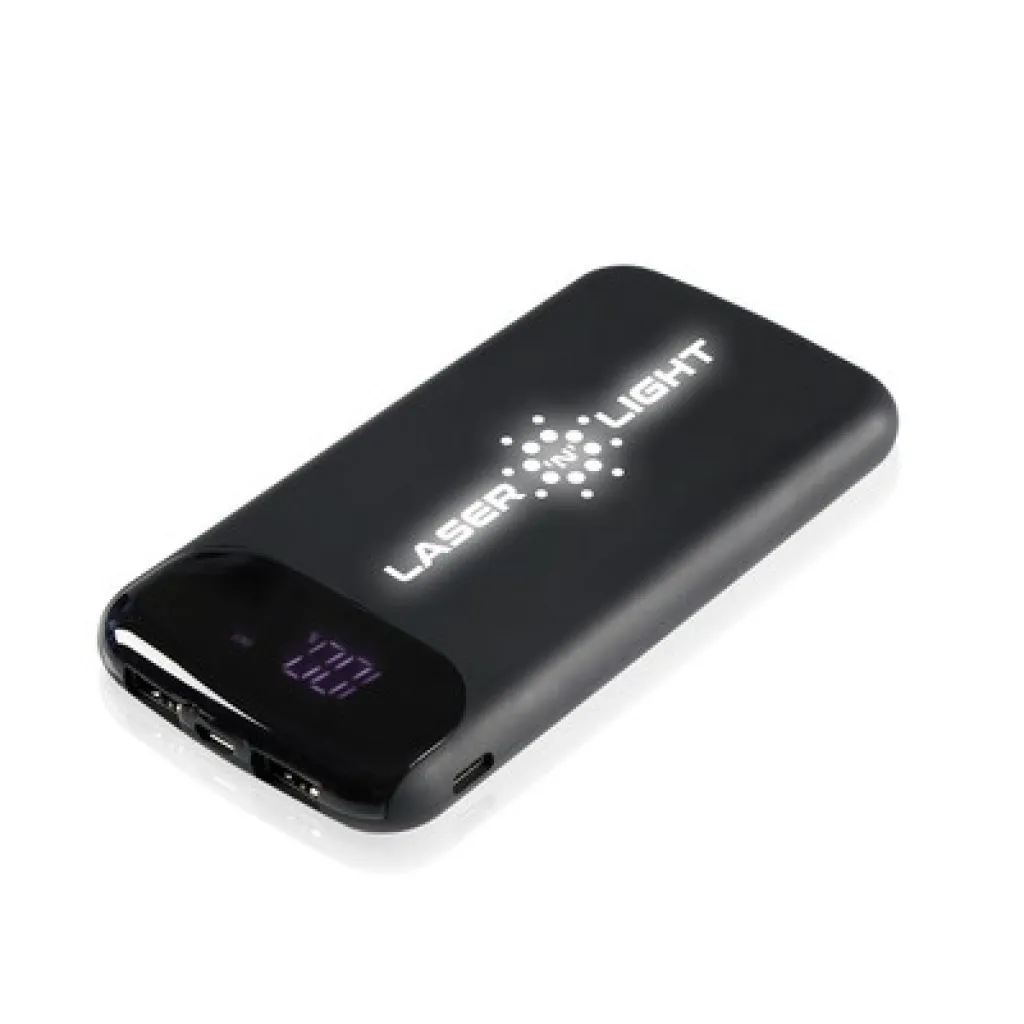 Mauro Conti power bank 8000 mAh, wireless charger 5W, works with mobile phones with inductive charging function, USB type C and micro USB inputs (max. 5V/2A), 2 USB outputs (max. 5V/2.1A), can charge two mobile devices simultaneously, digital display of power level, backlight effect after engraving, pouch and micro USB cable included, packed in gift box