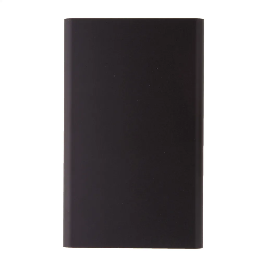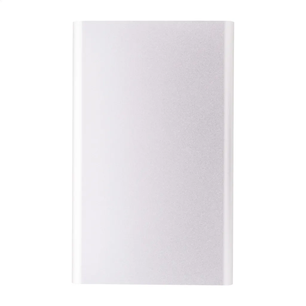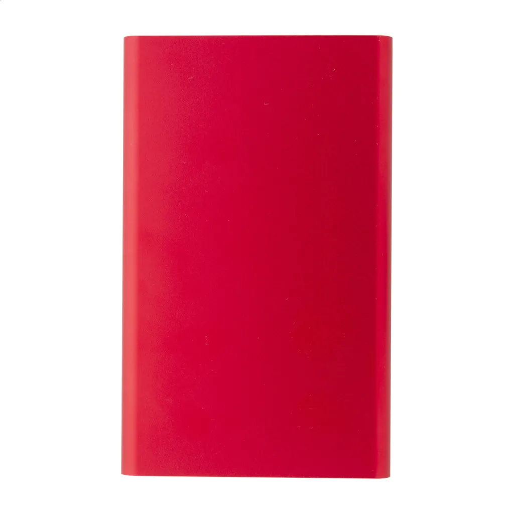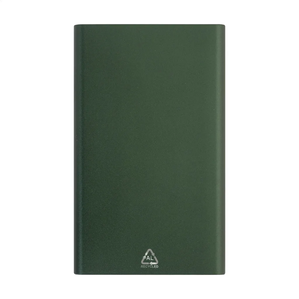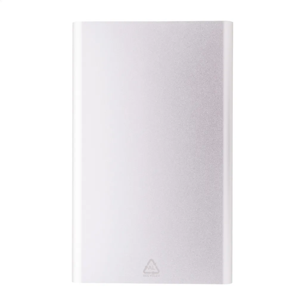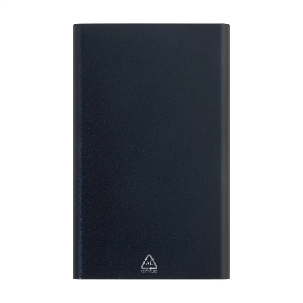 USB power bank in recycled aluminium housing with 4000 mAh battery. With 1 USB and 1 USB-C charger ports. USB-C input port. Including USB charger cable.