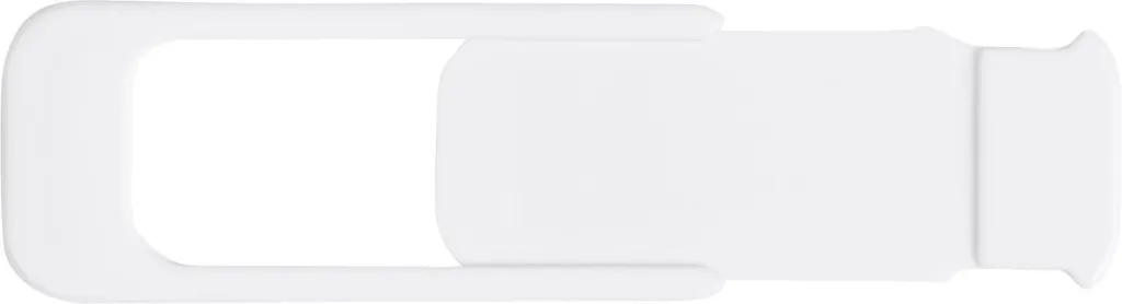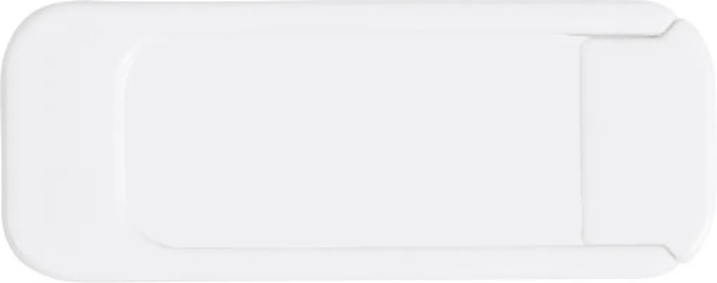 PP webcam cover with double-sided stickers to hold the cover in place. The cover easily slides open and closed. Item does not stick on glass surfaces.