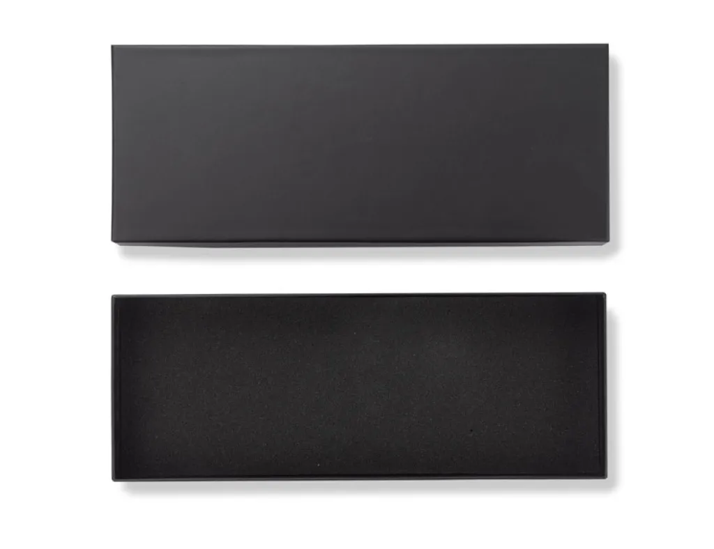Black box made of strong, solid material, covered with foil for a better effect. Inside, it is lined with foam, ready to be cut out for selected products. Perfect for any thermal bottle. Possibility to create your own set or buy a universal box.The box is sold without equipment. MADE IN POLAND.