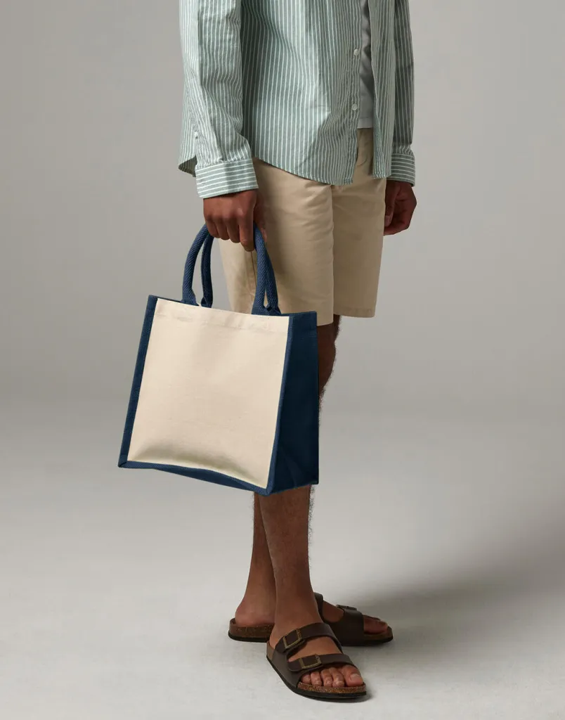 ·Small sides and bottom: 100% Jute (Laminated) ·Wide sides (Natural): 100% Cotton (Canvas) ·Cotton carry handles (length: 40 cm) ·Print-friendly canvas side panels ·Capacity: 14 Litres ·Dimensions: 30 x 30 x 19 cm ·Maximum embroidery: 18 tubular hoop ·Maximum print area: 24 x 22 cm.