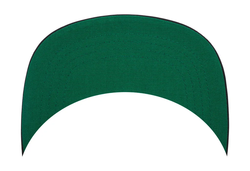 ·60% Cotton, 40% Polyester (Twill) ·Classic shape ·6 panels ·Flat peak with 4 rows of stitching ·Undervisor in contrast colour (Green) ·Snapback closure.